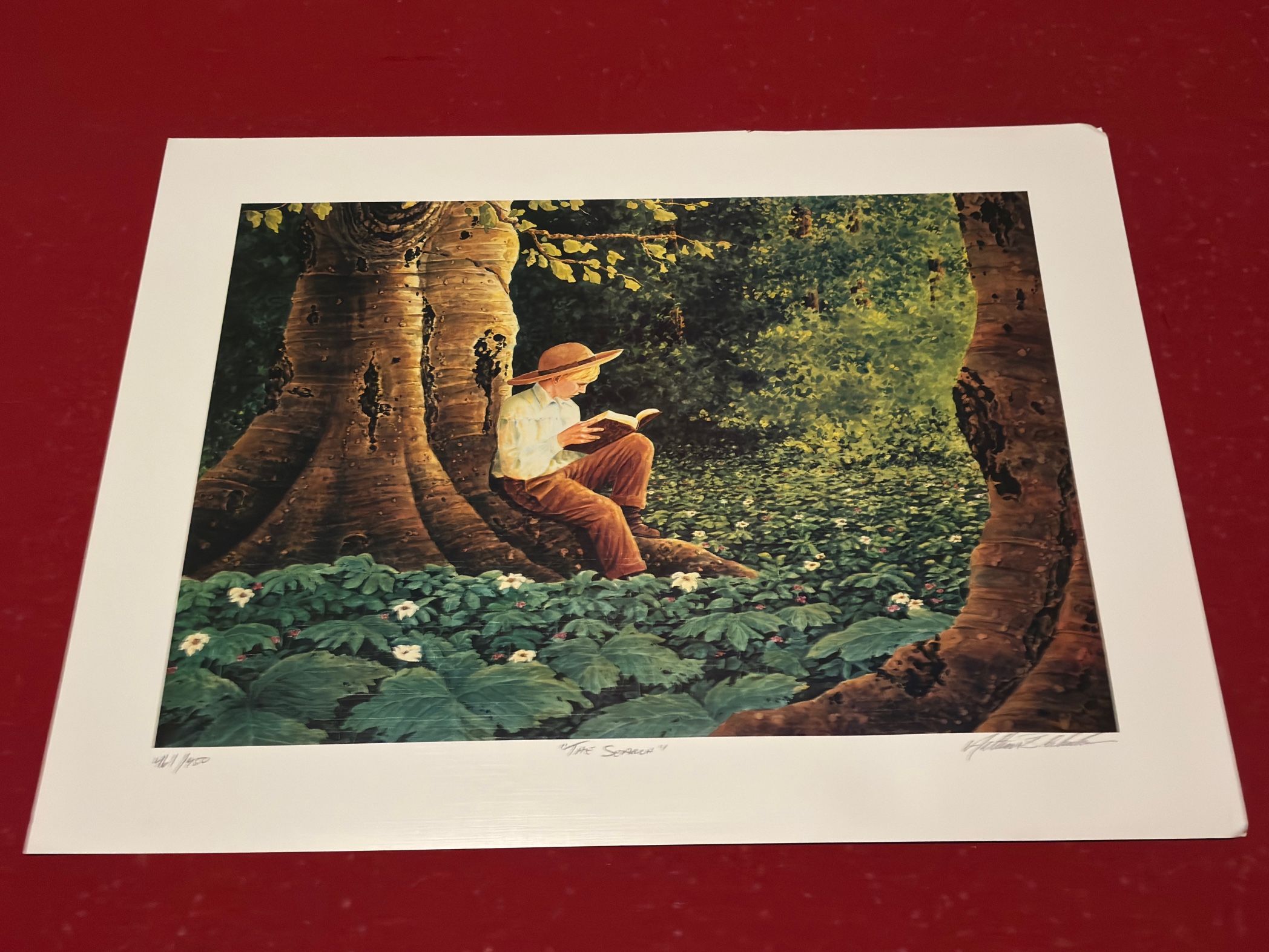 Signed And Numbered Art Print “the Search” Child Reading Book In Forest