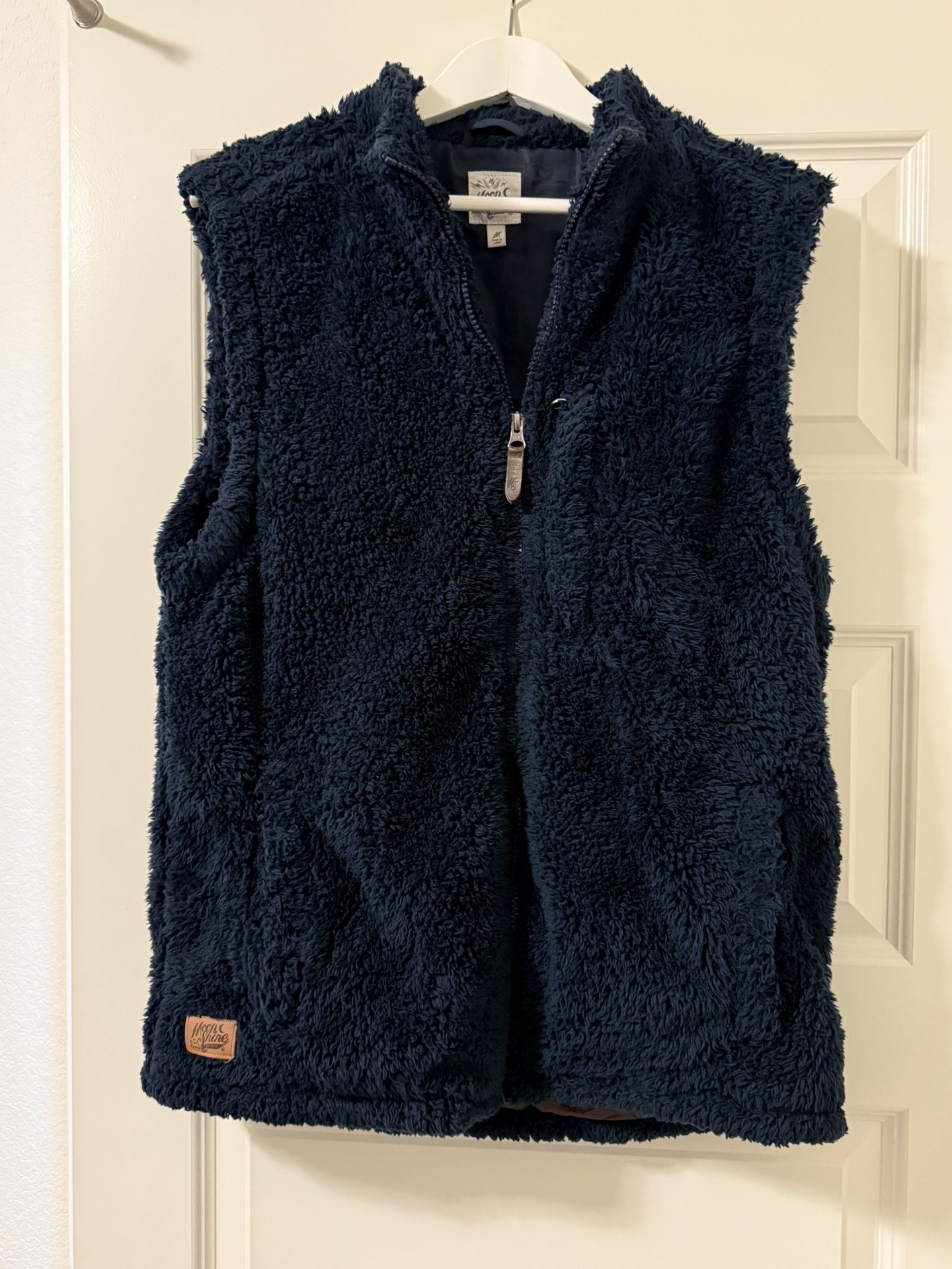 Moon Shine navy men’s faux fur zip front vest. Size M