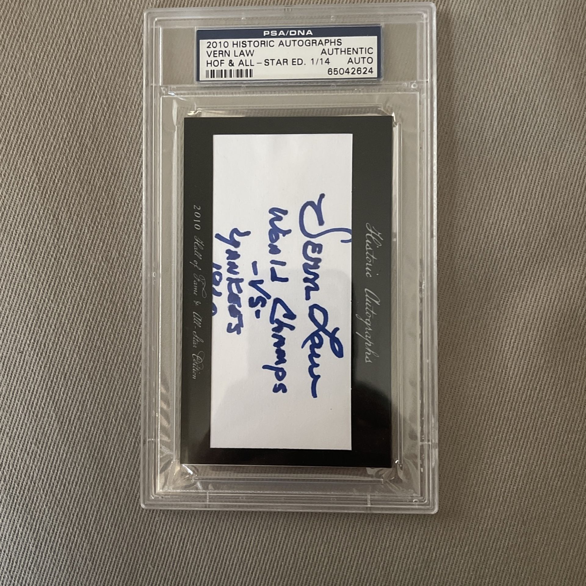 Vern Law autograph. PSA. 1/14
