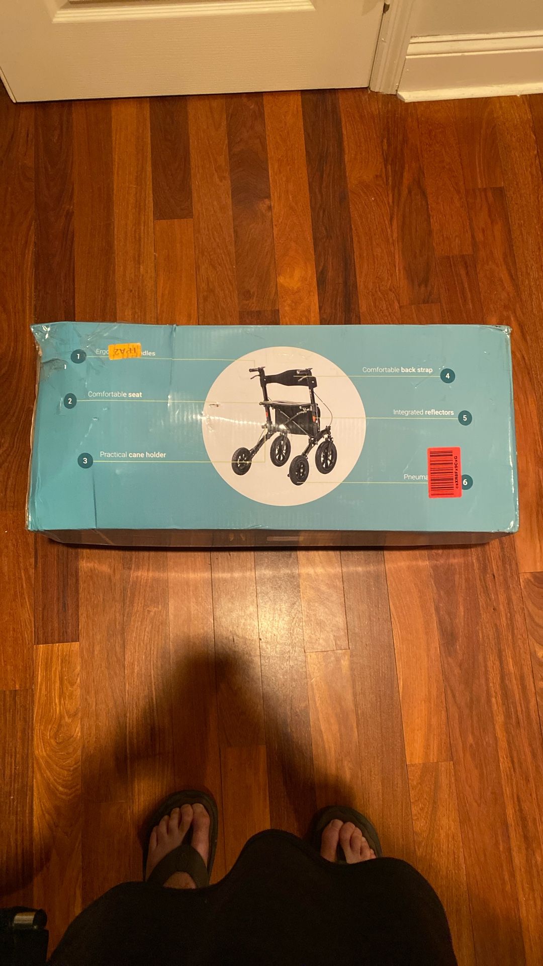 Rolling walker with chair suitable for indoor as well as outdoor more details on Amazon