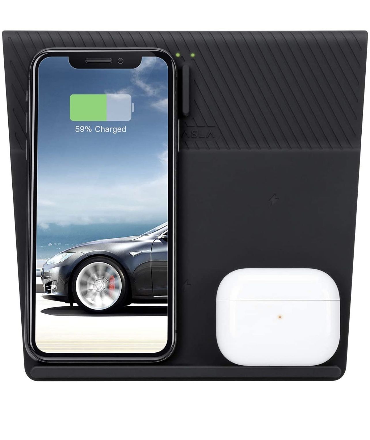 Farasla 4 Coils Wireless Charger for Tesla Model 3, Compatible with iPhone 12Pro/12/11 Samsung Enabled Phones and AirPods Pro/2, Galaxy Buds/Bud+/Buds