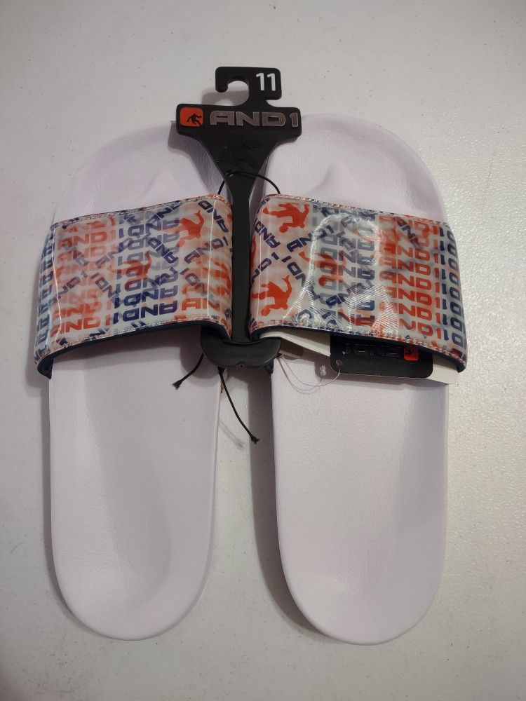 New And1 Crossover Slides White Blue Orange Size: Men's 11