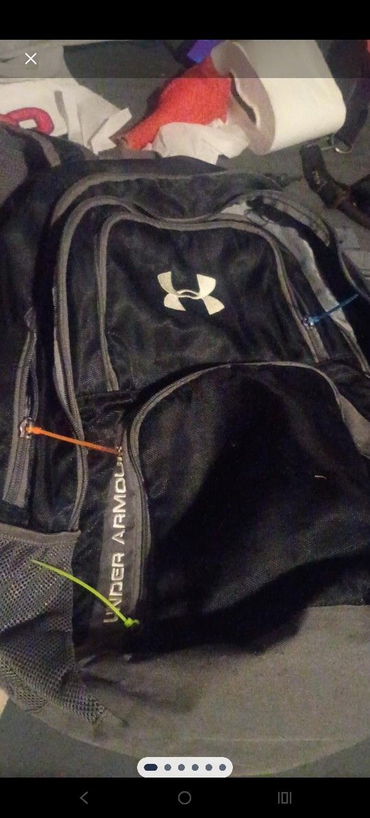Under armor backpack with multiple pockets zippers are missing I replaced with colored tie straps