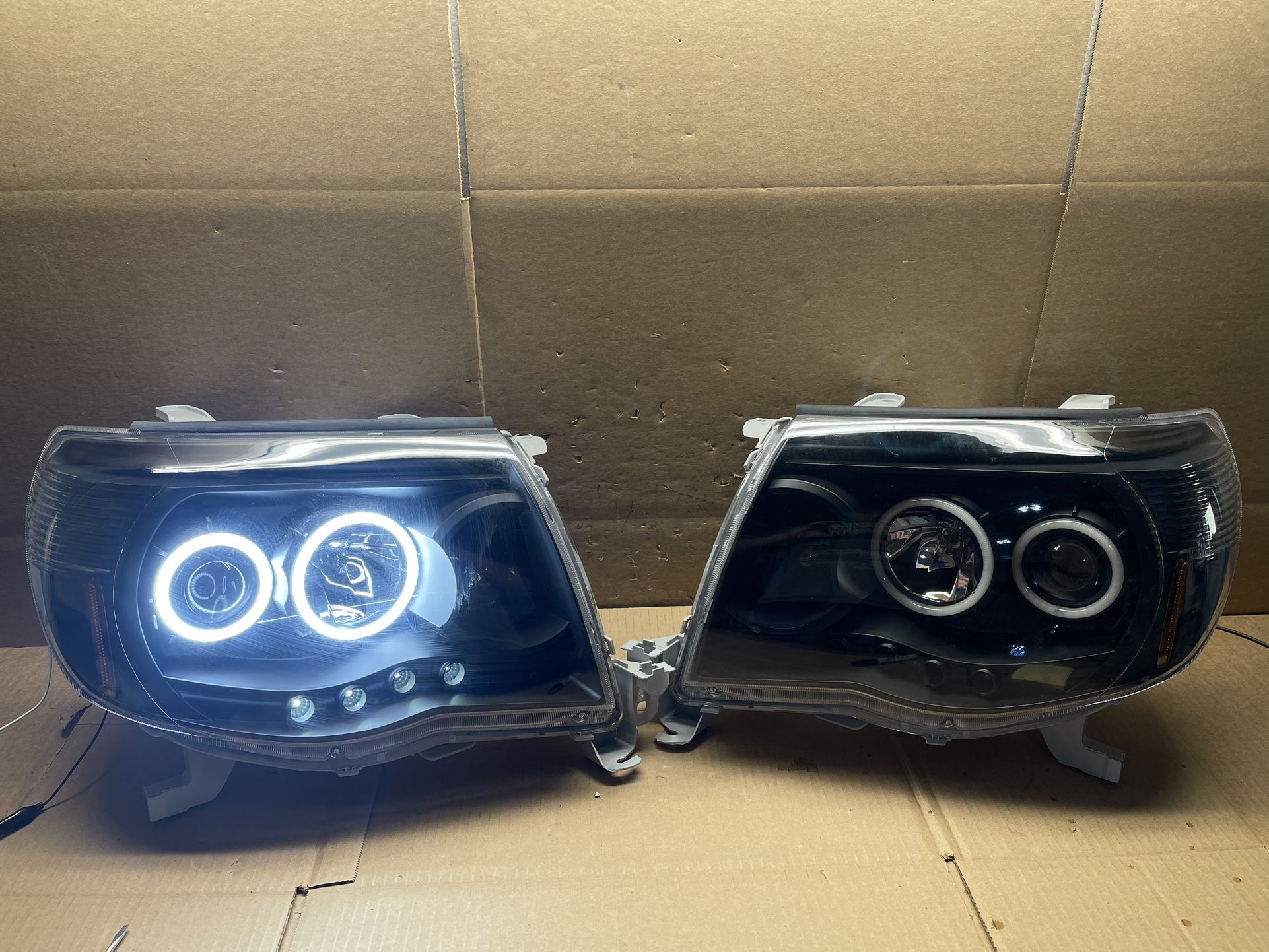 OH164 2005-2011 Toyota Tacoma Halo LED Projector Black Halogen Headlight Pair