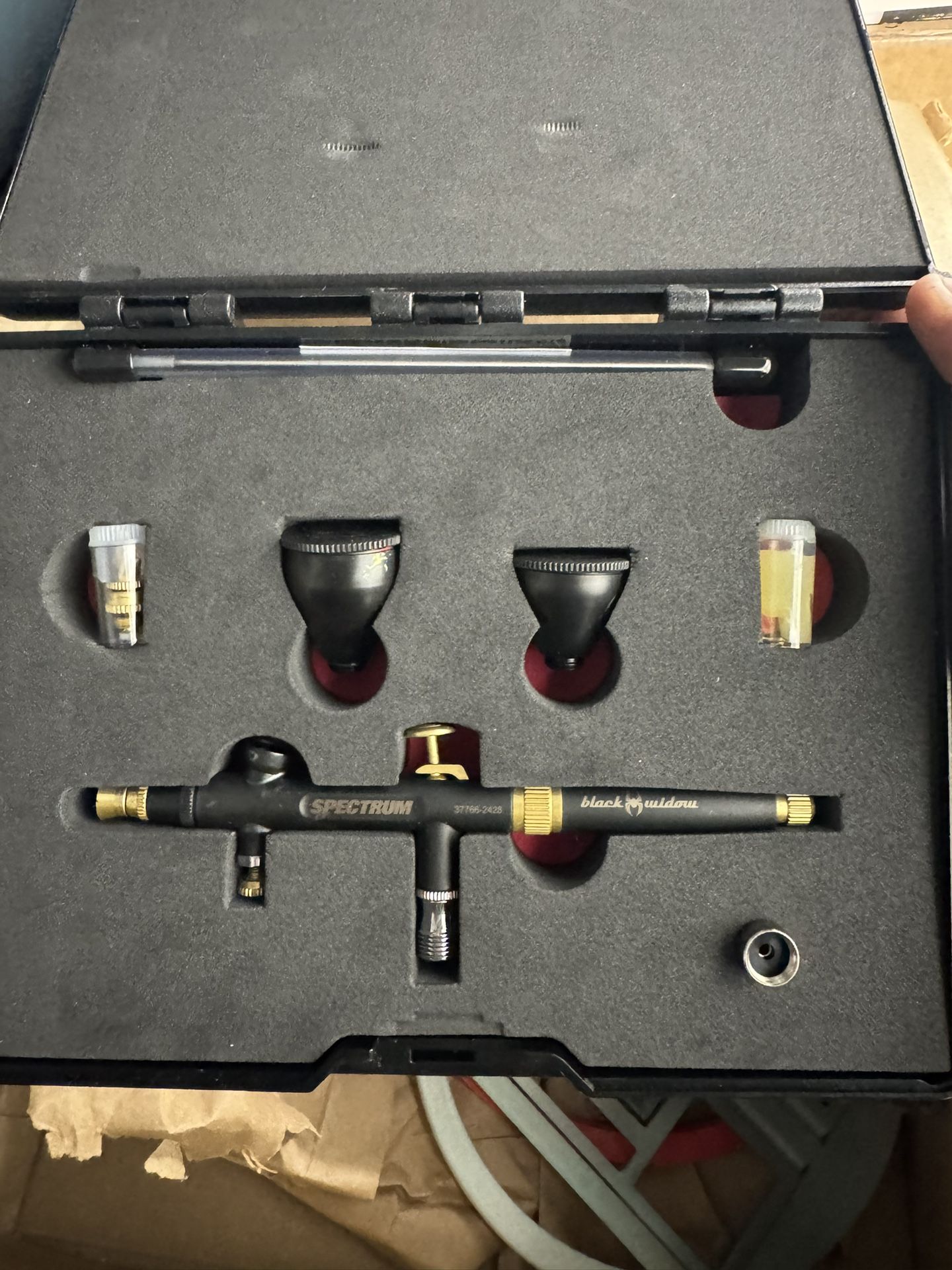 Two black widow airbrush and compressor and two hoses Comes with the cleaner and a few bottles of paint I am asking for 300 or best offer