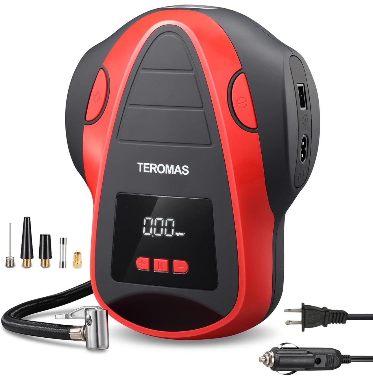 Tire Inflator Air Compressor, Portable DC/AC Air Pump for Car Tires 12V DC and Other Inflatables at Home 110V AC, Digital Electric Tire Pump with Pressure Gauge (Red)
