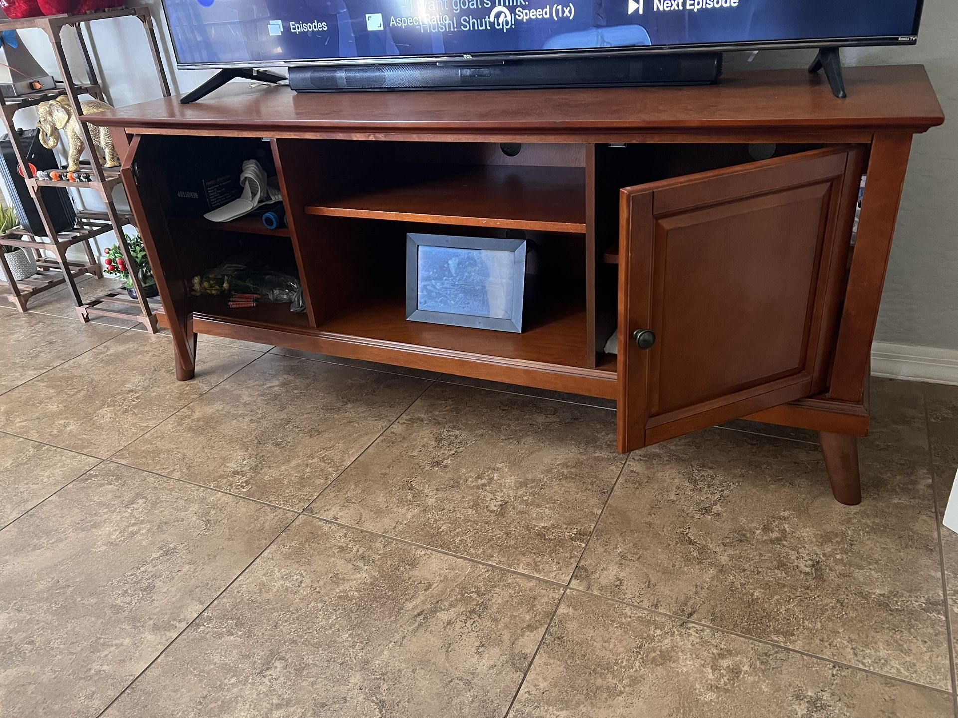 Brown wooden tv cabinet with storage. Length 60” Breadth 18” Height 25”