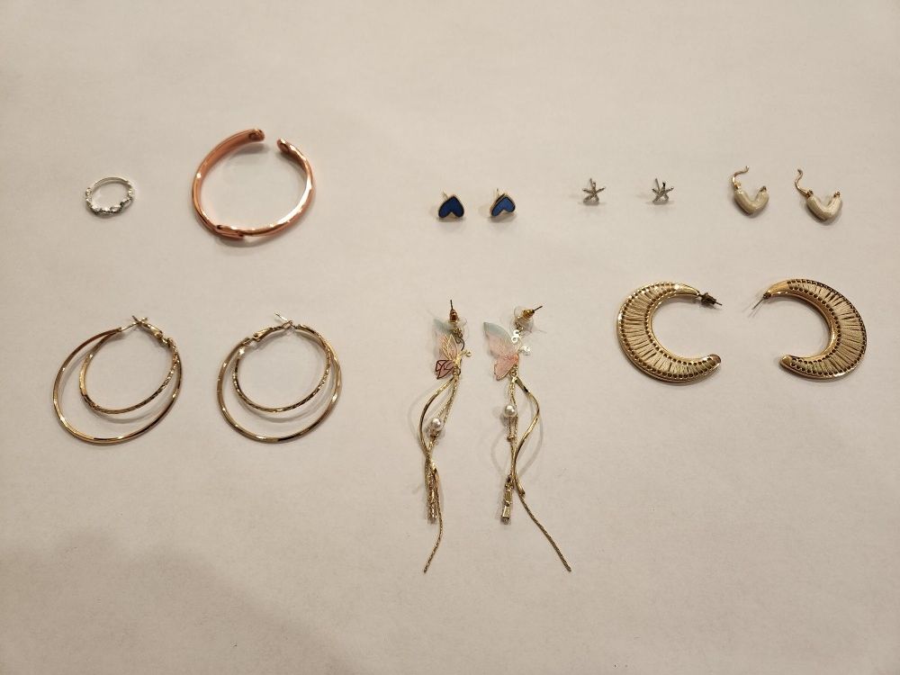 women accessories - 1 ring, 1 open bangle bracelet, 6 set of earrings all for $10