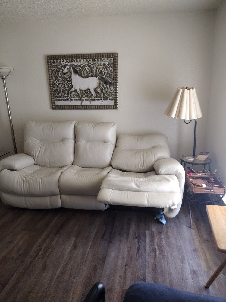 Mostly leather with some parts being leather like. Very expensive by FlexSteel. Great for large people.