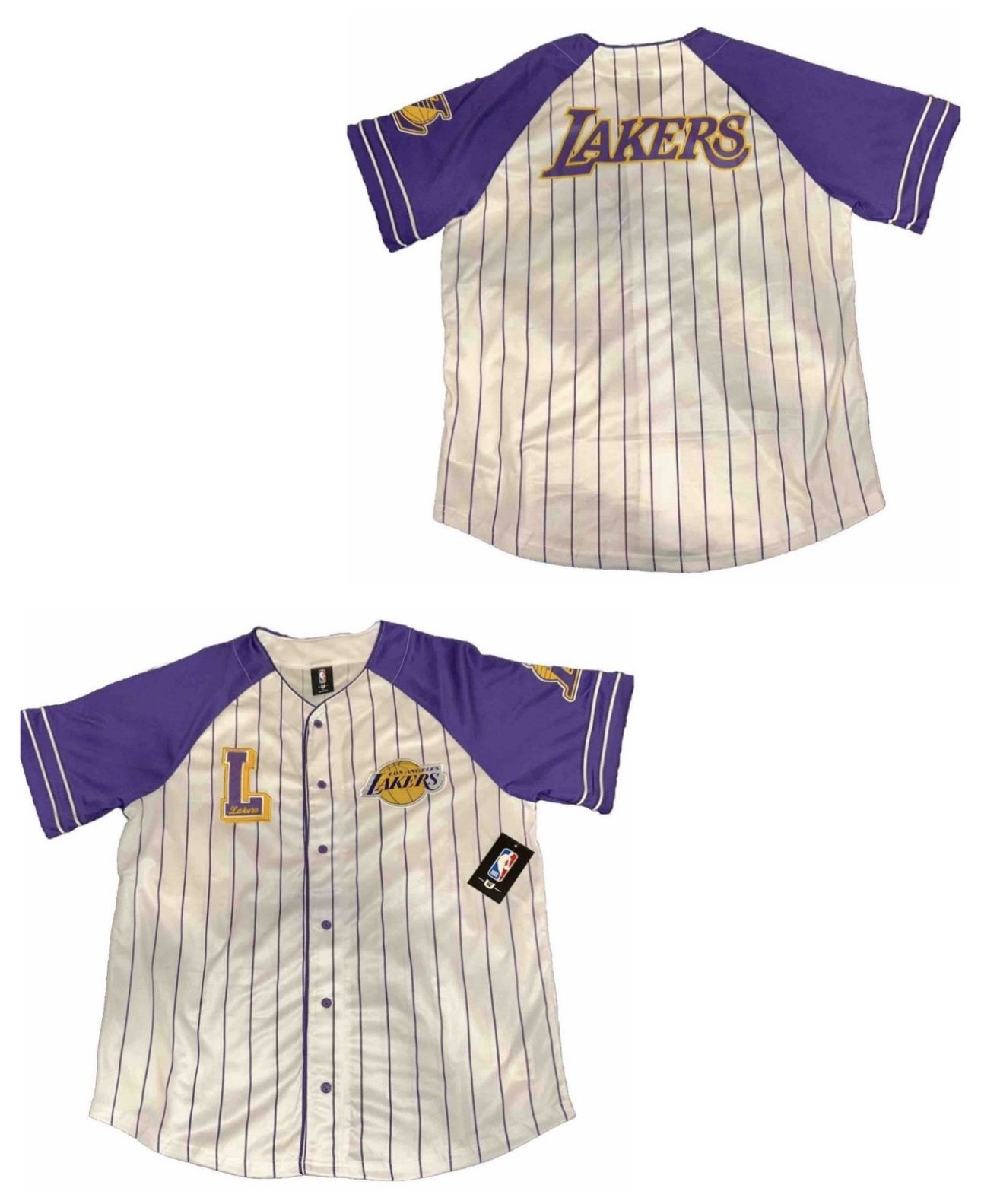 Los Angeles Lakers Ultra Game White Pin Stripe Baseball Jersey Mens Medium New