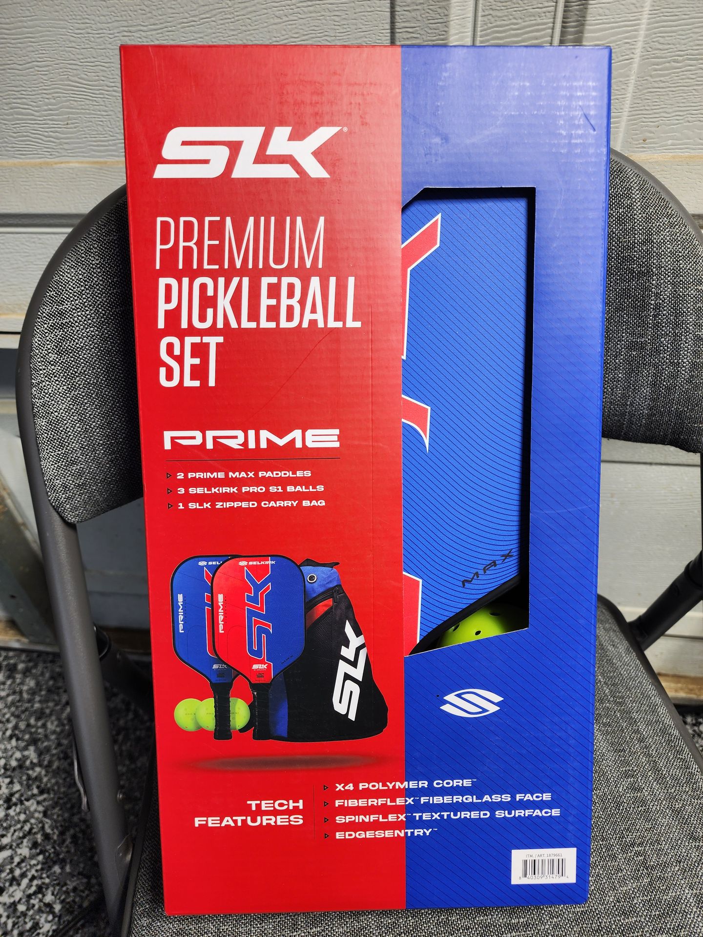 New ••••••• Located in San Jacinto The SLK Prime Max paddles are a fusion of advanced technologies crafted by Selkirk. The paddles are designed to offer emerging and established players alike, a high-quality paddle that amplifies one's performance and experience on the court. Prime Max paddles are designed to provide an optimal balance of consistency, control, and power. The result is players at all levels are able to hit more powerfully, connect with the ball with greater consistency and place their shots more accurately. Includes: (2) SLK Prime Max paddles (3) SLK Pro S1 pickleball balls (1) SLK sling bag Features: Fiberflex Fiberglass Face delivers a balanced combination of consistency, control, and power, providing players with the tools they need to execute their shots accurately. 13mm X4 Polymer Core delivers a powerful performance with an ample sweet spot, ensuring consistent play and responsiveness. SLK Contour Grip offers a confident hold, cushioned for comfort, and designed to prevent slipping during intense play Dimensions & Weight: Paddles: 7.85” W x 16” L x 0.51" H; Weight: 0.5lbs