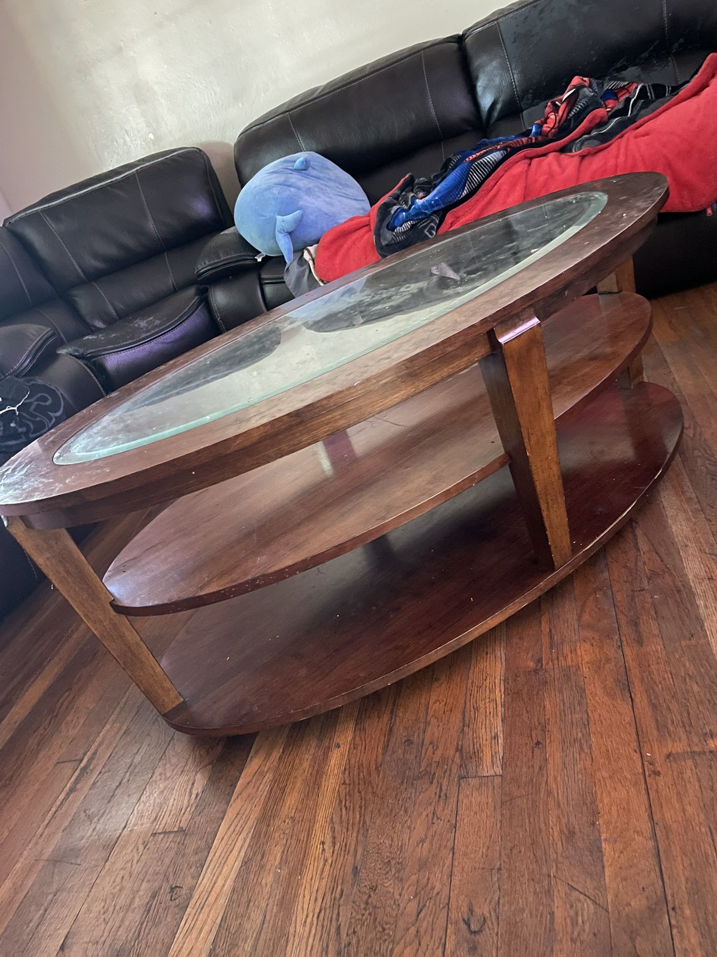 Wooden coffee with glass, pick up only, NEED GONE ASAP !! 40$!!