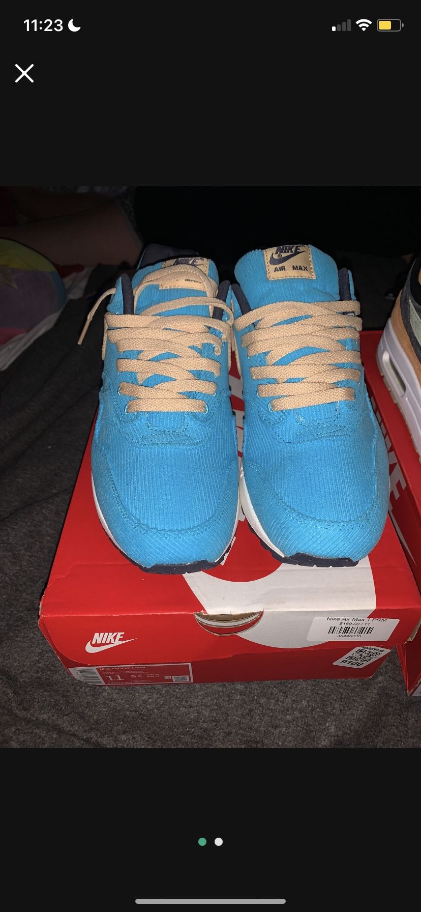 Both size 11 blue pair is dead stock only laced has extra laces black n orange pair are worn lightly has extra laces both og all asking 180 for both