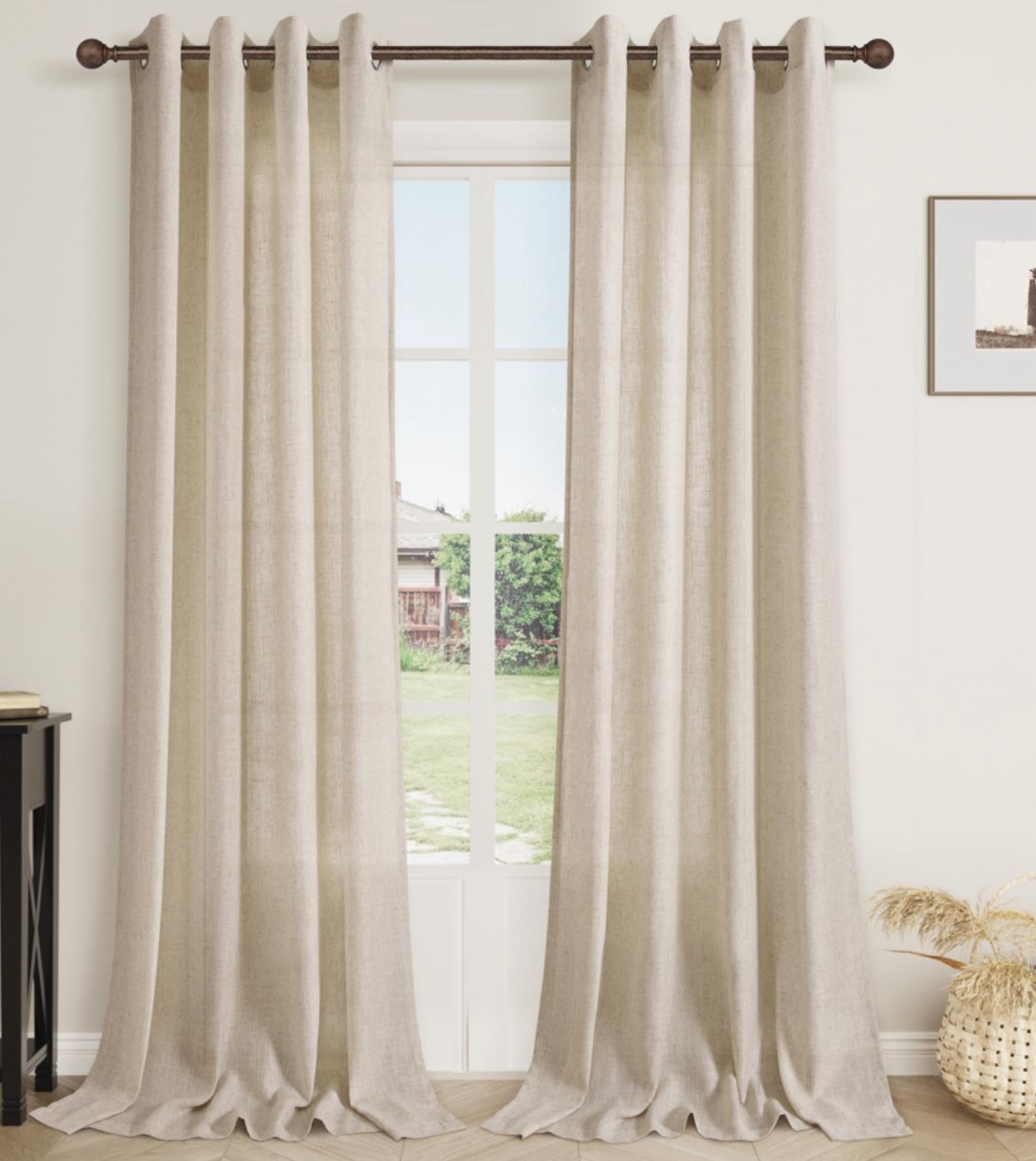 Beige Flax Linen Curtains 90 Inches Long for Bedroom Grommet Burlap Farmhouse Rustic Drapes Light Filtering Tan Semi Sheer 90 Inch Length Window Curtain 2 Panels Set for Living Dining Room $20 Pick up 51st Ave baseline