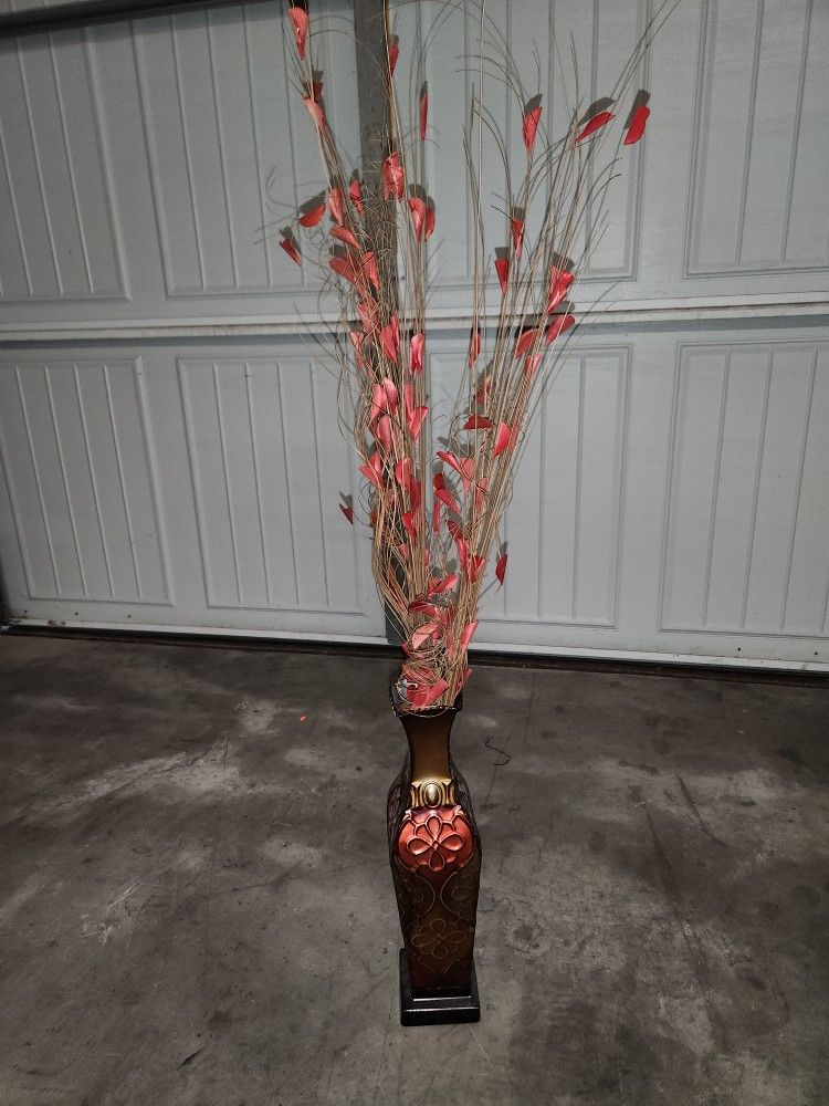 Burgundy And Brown Vase with Decor