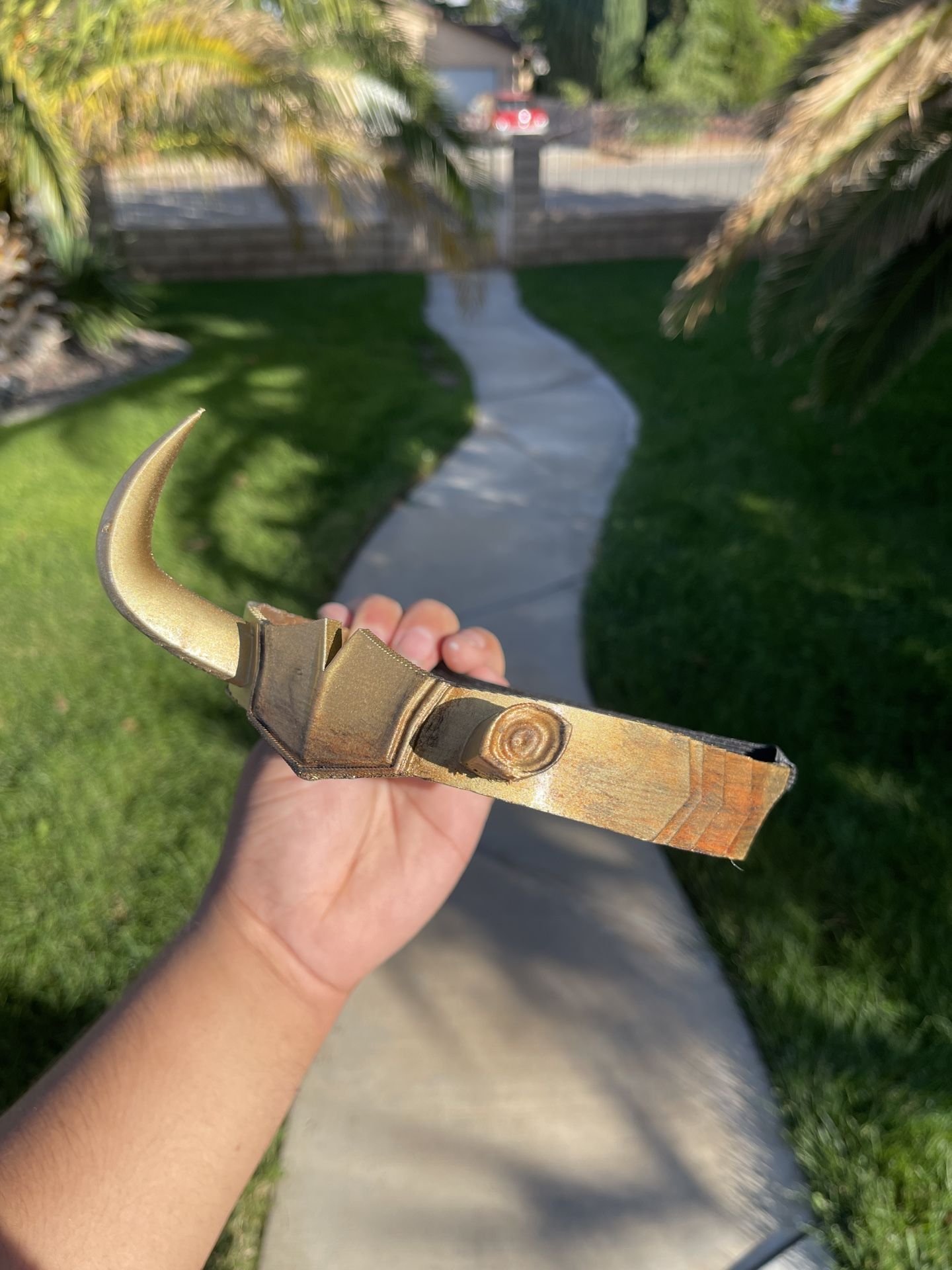 Sylvie crown from the Loki series. Hand painted gold, weathered to look aged like in the show, clear coat added, and headband.