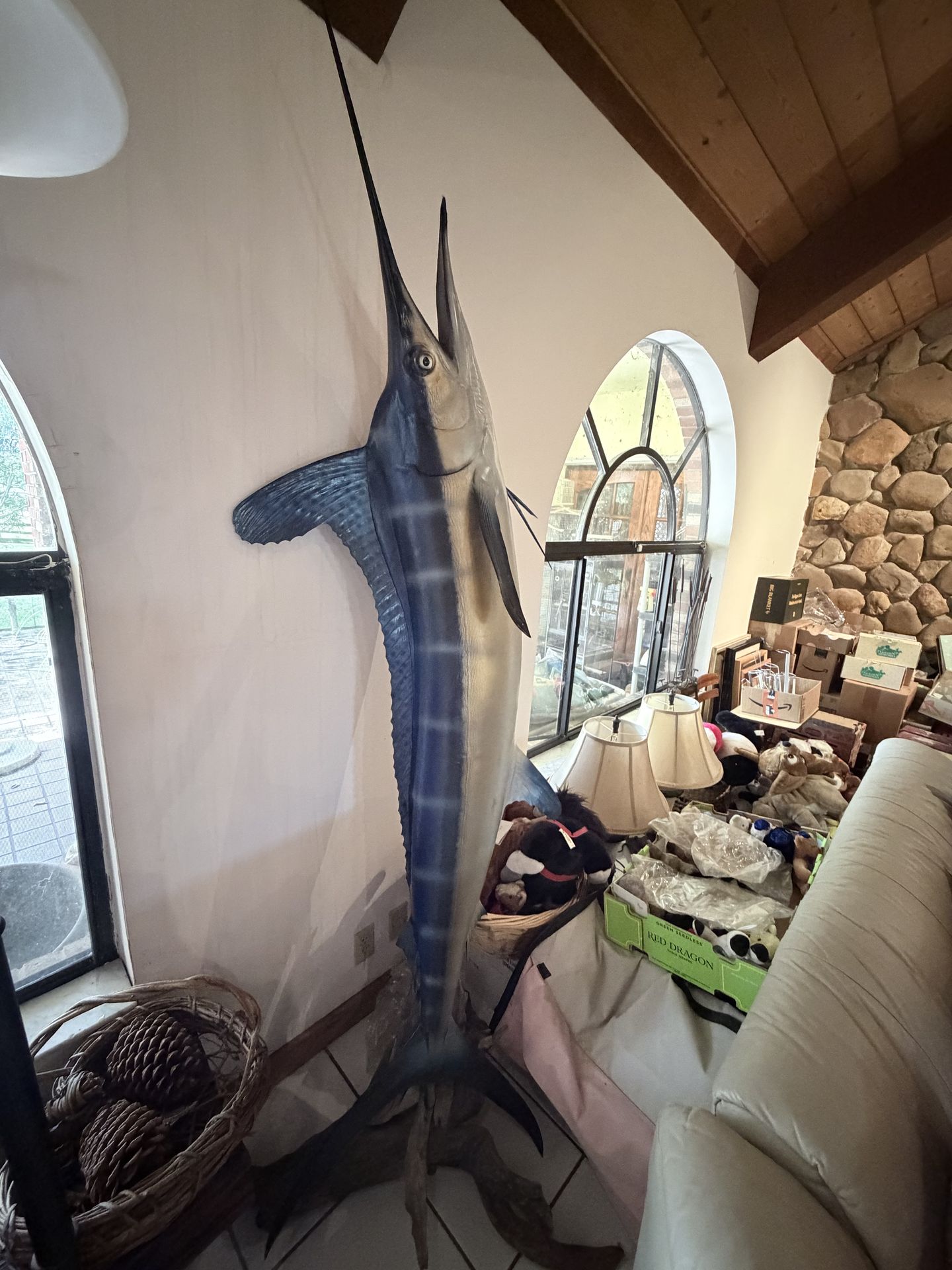 80-inch Taxidermied Sail Fish with Wood Mount (full length is 86.5”)