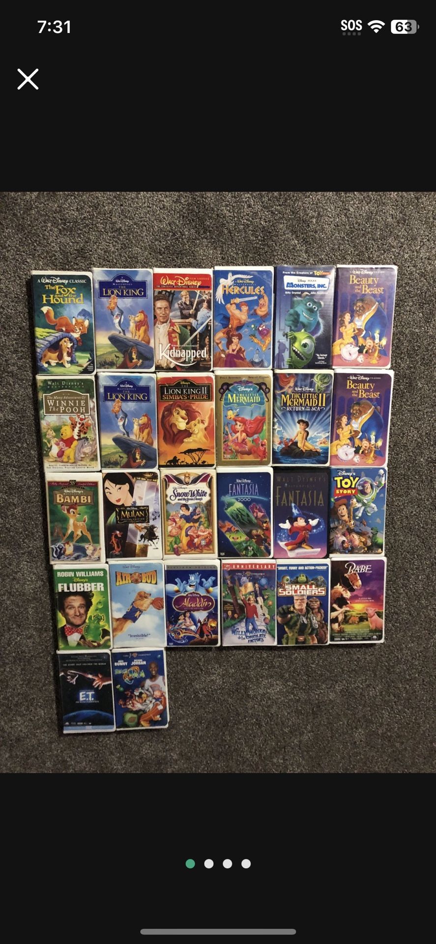 26 VHS Movies Includes Disney and others Special editions, diamond editions Case conditions vary Mulan Beauty and the beast Aladdin Snow White Lion king And many more Pick up only