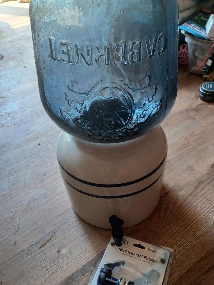 Non-negotiable Party Ceramic Decanter With Spout And 2 1/2 Gallon Glass Carbarnet Decanter Glass Decanter is new Spout is new and an extra new Spout included.