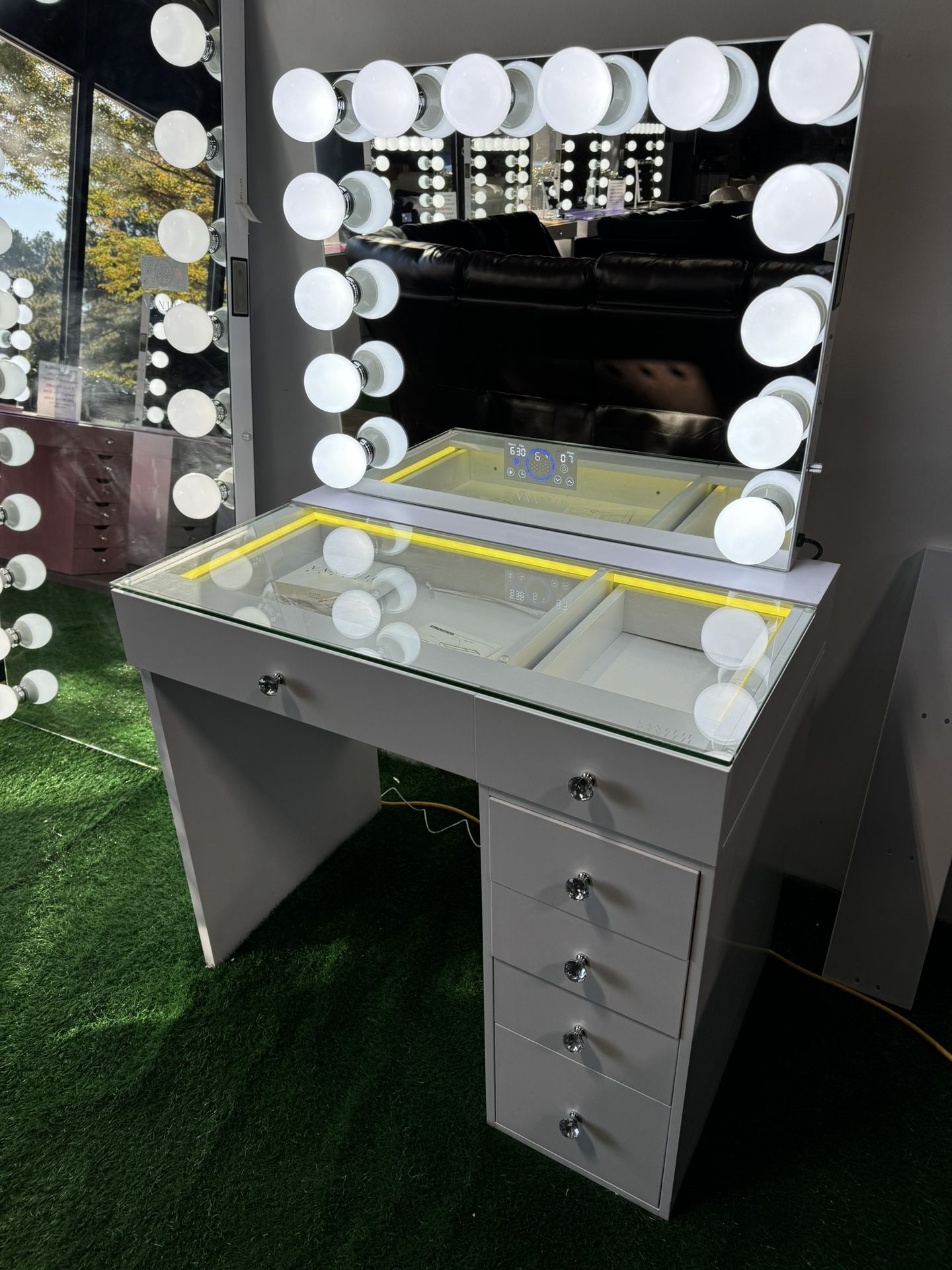 Makeup Vanity with 6 Drawers and LED Mirror with Bluetooth Speaker