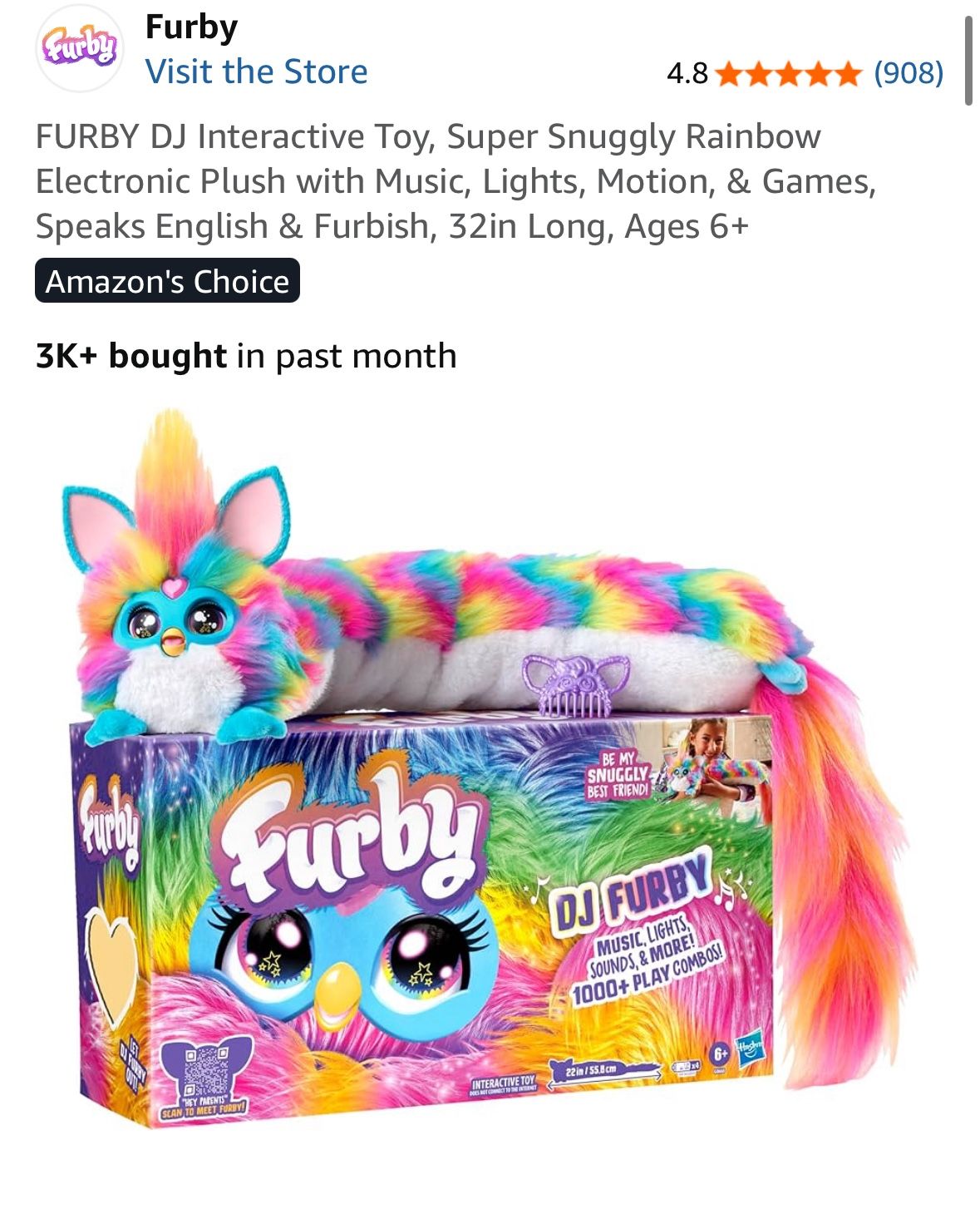 FURBY DJ Interactive Toy, Super Snuggly Rainbow Electronic Plush with Music, Lights, Motion, & Games, Speaks English & Furbish, 32in Long, Ages 6+