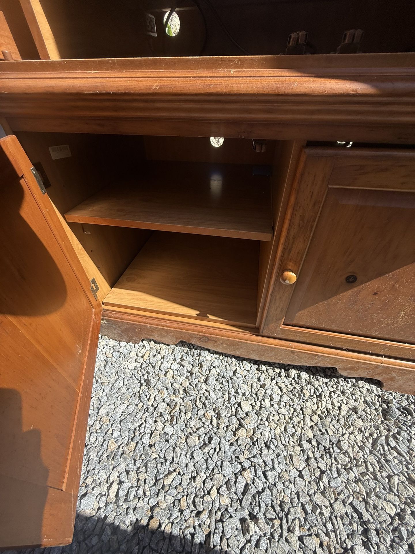 🪵 Solid Wood Armoire / Storage Cabinet Classic wood armoire with tons of storage and versatility. Features: ✔️ Large upper cabinet space ✔️ Interior shelf ✔️ Lower storage cabinet ✔️ Solid wood construction ✔️ Built-in opening for cords (great for TV / media setup) Perfect for: • TV cabinet • Wardrobe • Office storage • Linen storage • Airbnb furnishing Good sturdy piece with character. Shows normal wear consistent with age (see photos). Great candidate for: • Refinish project • Rustic look • Functional storage 📍Located in Rancho San Diego Easy pickup Message if interested 👍