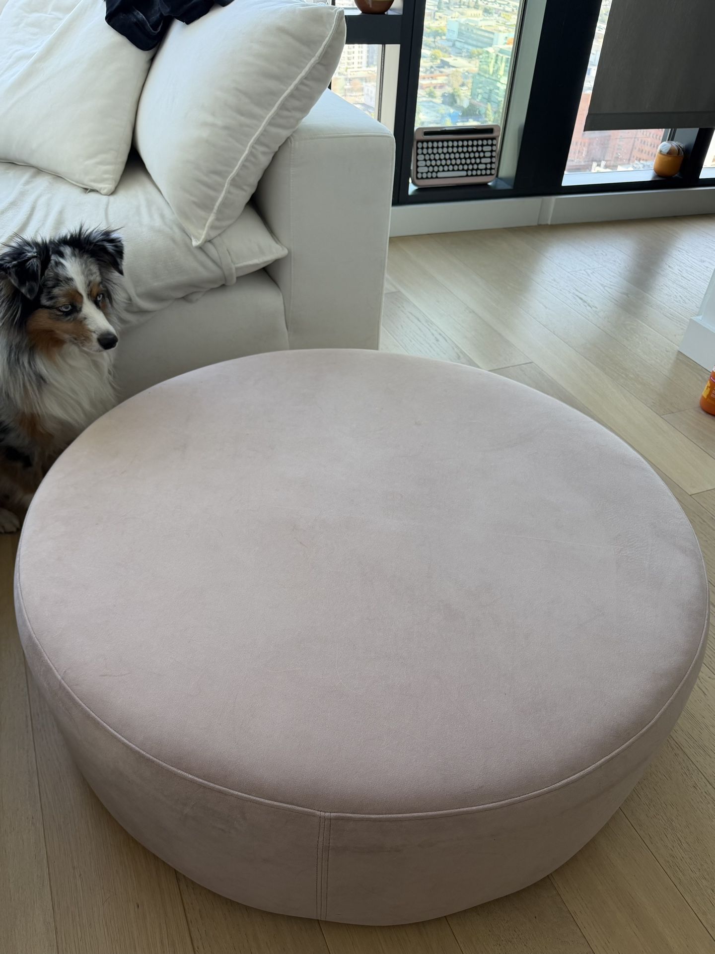 Round velvet ottoman