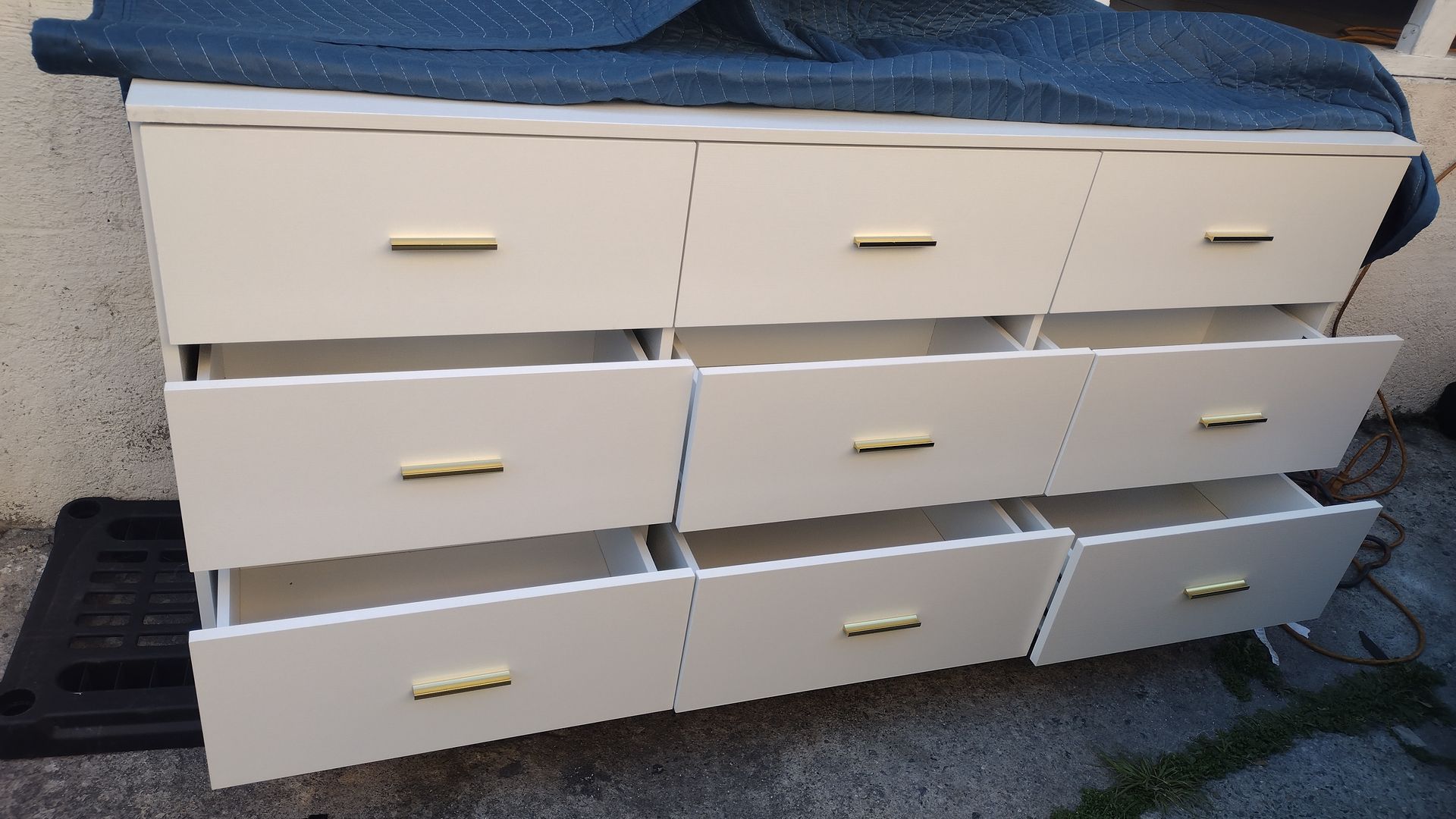 9 DRAWER DRESSER COLOR WHITE AND GOLD HANDLE