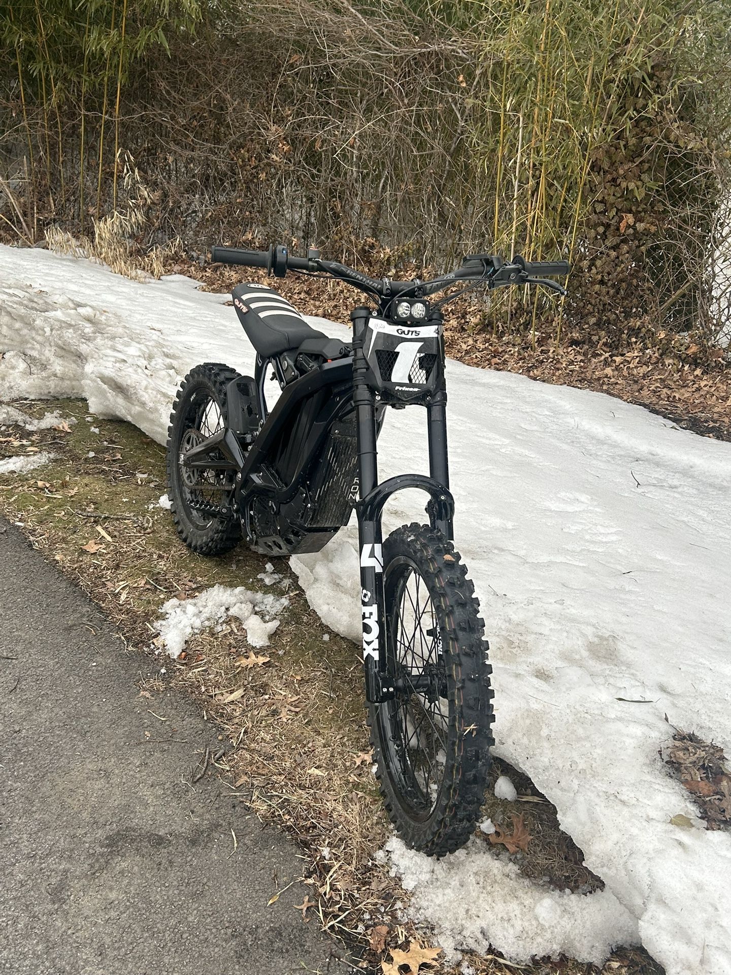 This bike is so mint it has a dark blue sparkle powder coat has upgraded. Pegs stock brakes , upgraded bars, and bar mount has stem lock and carbon fiber, stem, spacers, gut seat, cover vented, Moto cut plate with Baja light fox 40 forks that I don’t know if they’re real or not has upgraded linkage has KKE rims and Dunlop tires can throw in a brand new Astro works foot lock for an extra 40 has motor covered that’s going on tomorrow all black has battery wrap, and some titanium bolts on the bike also upgraded triangle and has around 3300 miles but the bike is in good condition also got black new odi grips have charger and key. maybe taking trades I don’t want clothes, gaming, PC or gas bikes. Let me know can deliver for an extra 20