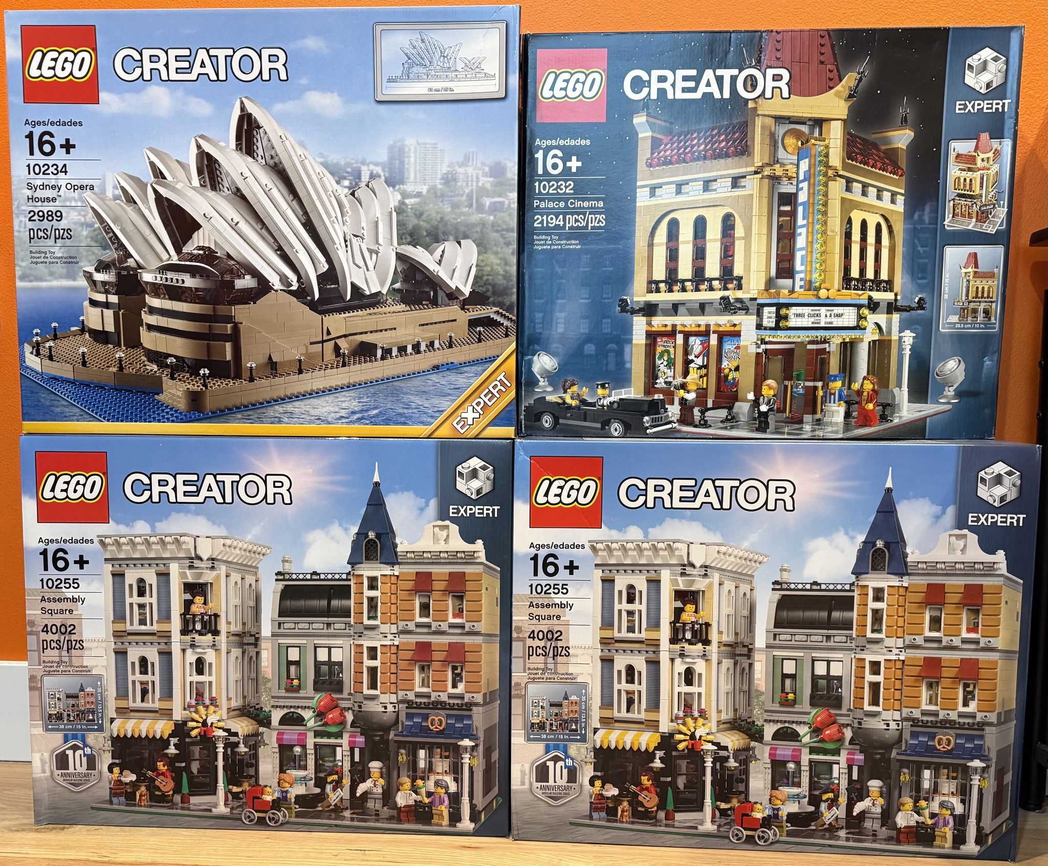 LEGO Creator Expert Sets (All New, See Photos) There are several new sets available. They are sold individually, but we can work out some discounts for multiple items. Each set is sealed in its original box and starts with 10. I cannot include full numbers since OfferUp thinks it’s a phone number. -234 Creator Expert: Sydney Opera House $400 -255 Creator Expert: Assembly Square (2 available) $375 -232Creator Expert: Palace Cinema $380 (Seals are very weak on one side, but still holding. I did apply tape to ensure it stays closed) The boxes are not all in mint shape, but should be presentable. You can see front and back in photos. All stored in a smoke and pet free home. Cash only. Thanks for looking!