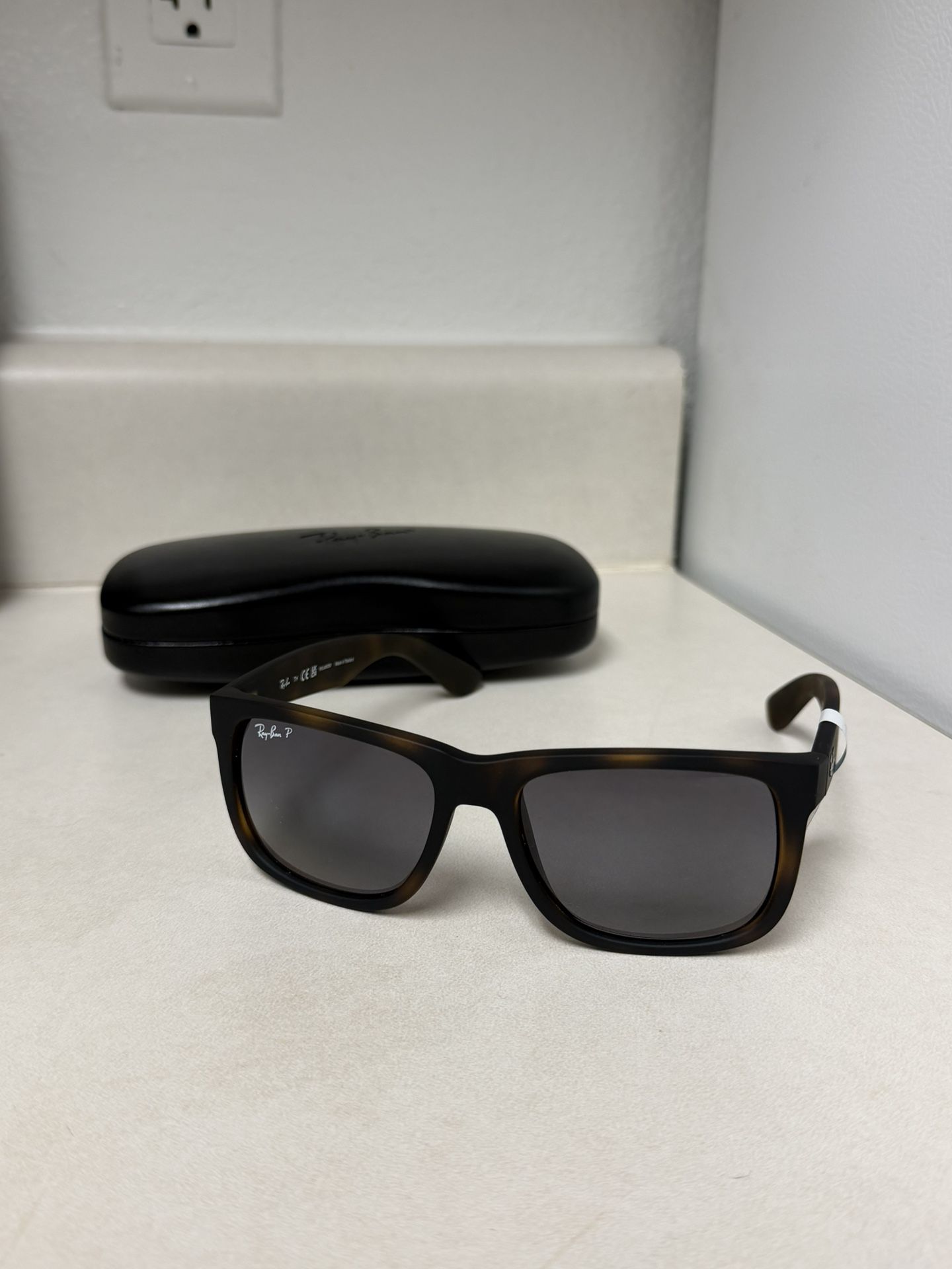 Authentic Ray-Ban Justin sunglasses in classic tortoise (Havana) with polarized dark grey lenses. Brand new with original Ray-Ban case and retail tag attached. Lightweight, comfortable fit with modern square styling. Polarized lenses reduce glare and provide 100% UV protection. Details: Model: Ray-Ban Justin RB4165 Color: Tortoise (865) Lenses: Grey Polarized (85) Size: 54-16 Condition: New with tags Includes: Original Ray-Ban case Perfect for everyday wear with a clean, modern look.
