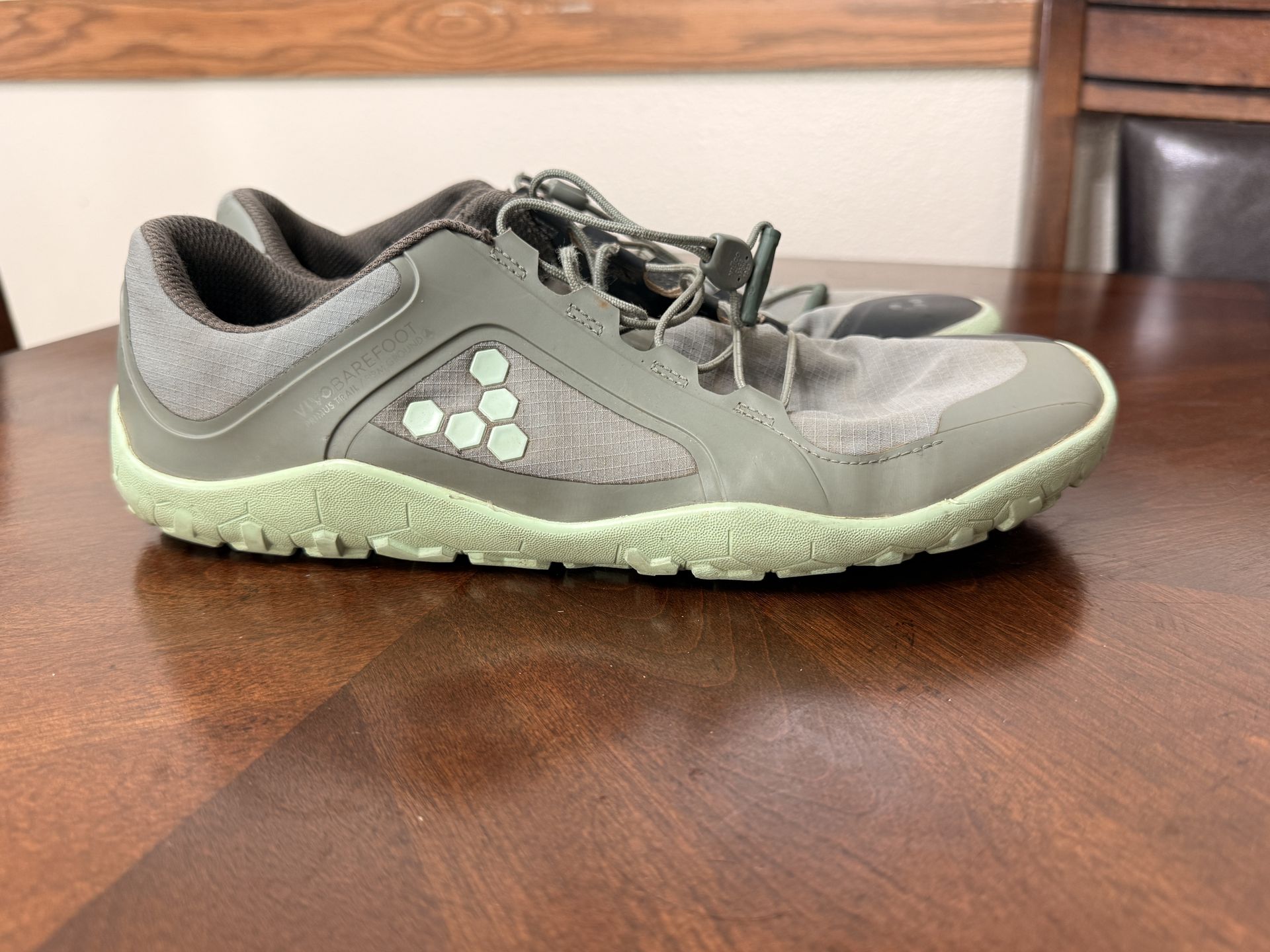 Mens trail running shoes, Size 42 EU, size 9US, I wear a size 10 but had to go down a size for these shoes. The Primus Trail III All Weather Firm Ground is a water-resistant evolution of the Primus Trail FG: our original, best-selling trail-running sneaker. Similarly light, durable and flexible for varied hardpack trail adventures – made with recycled, vegan*, high-performance materials – the Primus Trail III AW FG features water-resistant materials for trail runs and hikes in wetter, cooler climes. Shoes are in good condition, left shoe has minor scuffs see picture. Only used shoes a hand full of times on grass. Tread on shoes has 95 % life in them. I can’t use them because barefoot shoes hurt my ankle. Paid $200 for them, $85 firm. Will not take anything less so don’t waste my time.