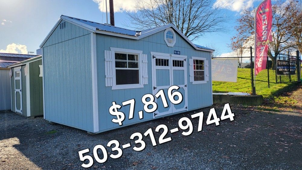 Wall: LP Smart Panel - BREEZY Trim: BARN WHITE Roof: metal - SILVER Inventory Number: WSUTG-A7(contact info removed)-052825-SP Utility Gable Dormer Shed – 10×20 $7,816 + Tax Full cash price Rent To Own Price $289.48+ Tax 60 Month Rent to own No credit check! Instantly approved! Do not need to worry about getting approved with financing because there is no financing! No inquiries on your credit! Ask about our 90-day same as cash deal Free delivery up to 30 miles