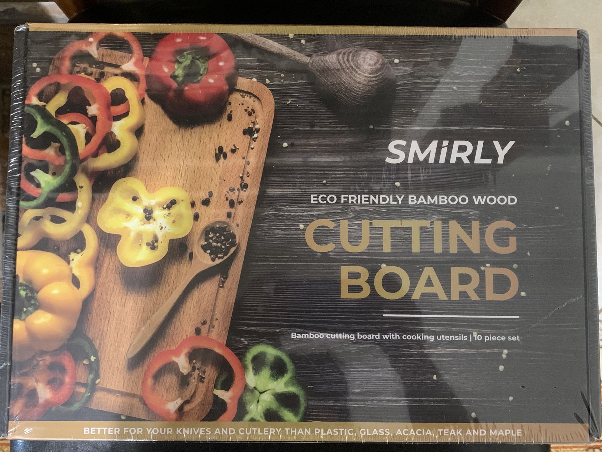 Brand new 10 pcs bamboo cutting board with cooking utensils $35 cash pick up