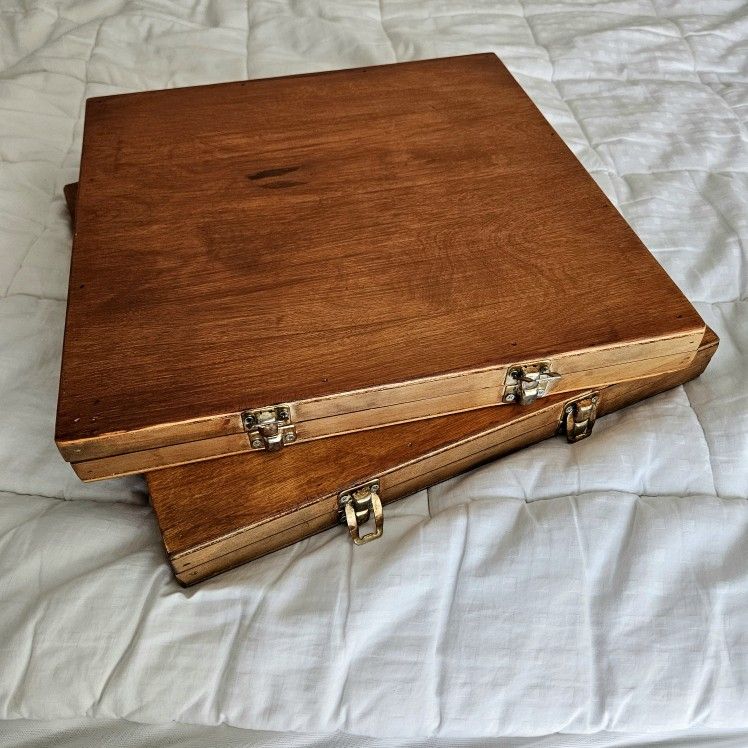 Pick up in Pacoima. These 2 identical custom made display cases measure 13.75" wide by 13.75" tall by 1.5" deep. Interior depth is 1". Suitable for collectibles such as art materials, butterflies, sea shells, mineral specimens, arrowheads, knives etc. Easy to put down a layer of Styrofoam base to pin or attach your collectibles. Minor surface defects on the inside can be removed with sanding and refinishing if you wish. 2 latch closures. If this posting is still up it's still available.