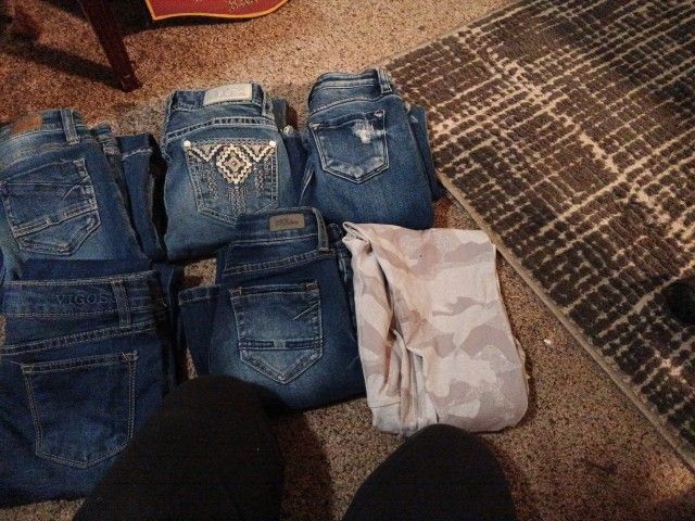 Like brand new girl jeans and one pair of leggings! Excellent shape!! Size's 10, 7R, 10R, 12R, 2 pairs of BKE 1 pair of vigoss 1 pair of rock&roll 1 pair of kancan 1 pair of leggings
