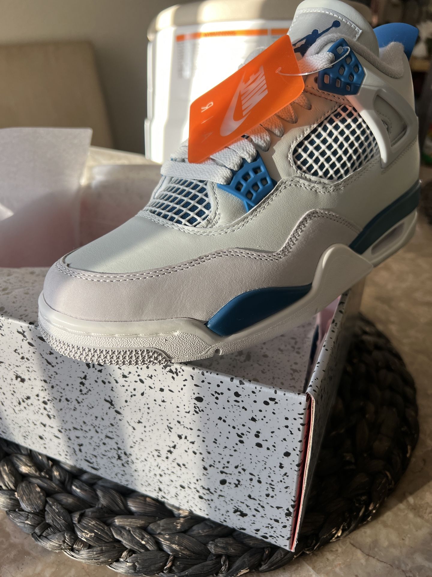 AIR JORDAN 4 RETRO MILITARY BLUE BRAND NEW NEVER WORN 6.5 MEN 8 WOMAN