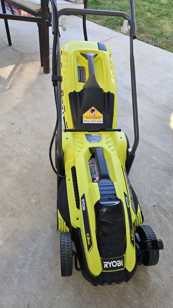 Ryobi 13 inch blade 11amp Plug in in and and dont have to deal with gas or batteries Never used in a box Nice for small areas