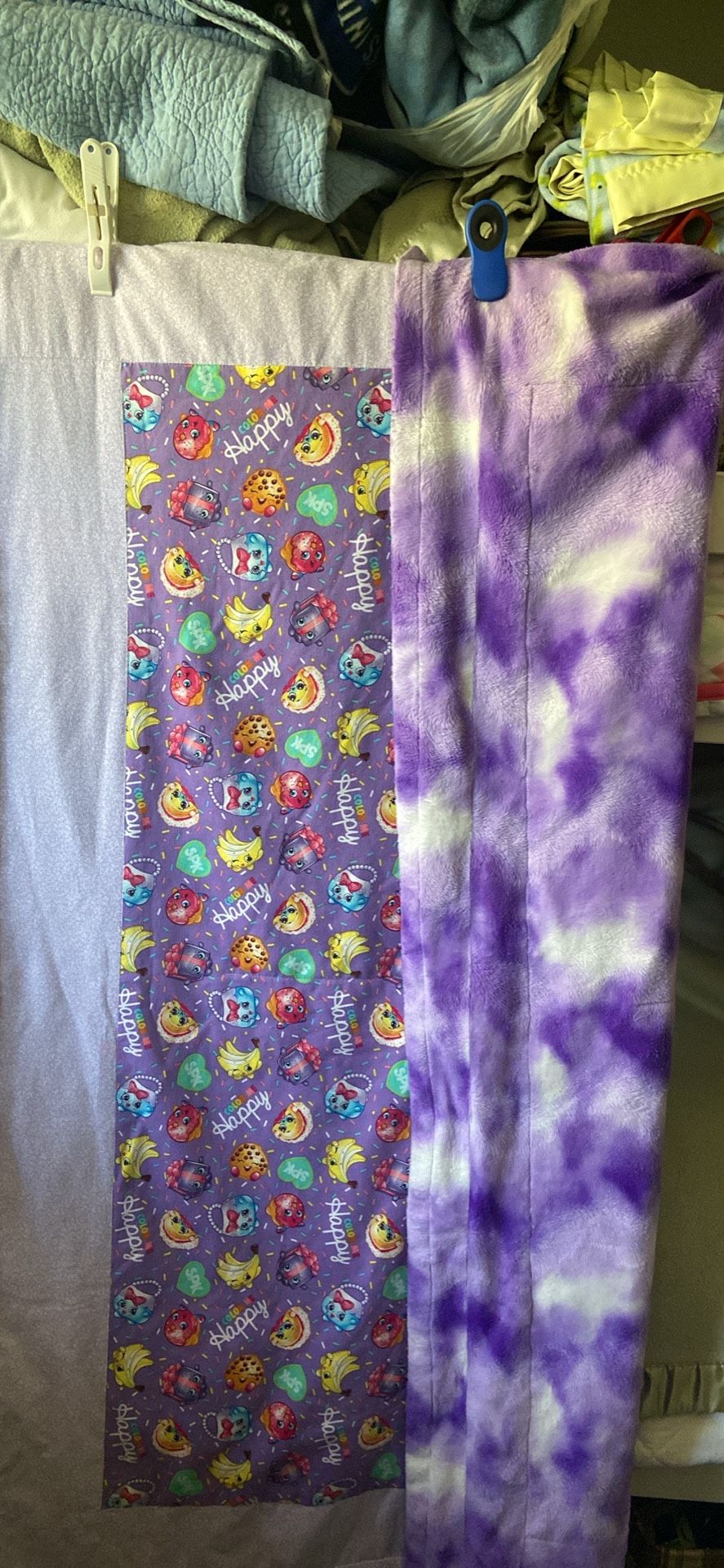 Super soft furry side in purple the Dye look Shopkins on the front . Very warm Cash only Pickup in Oregon City near the Redland store