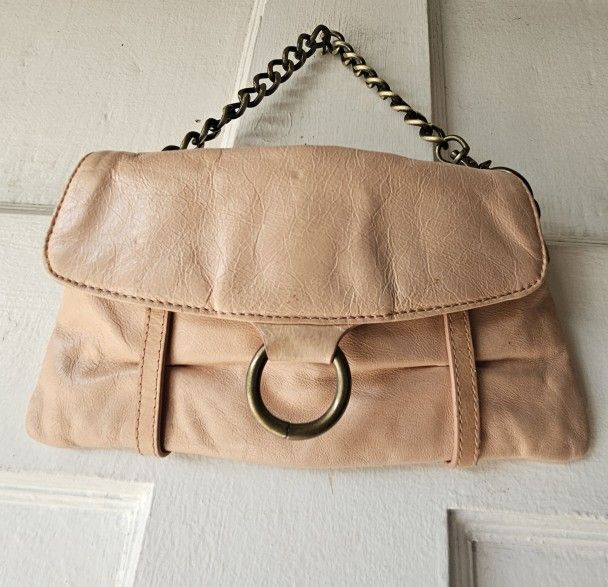 HOBO INTERNATIONAL LEATHER PURSE BAGUETTE FLAP BAG CLUTCH DETACHABLE CHAIN Y2K PRE-OWNED IN GOOD CONDITION
