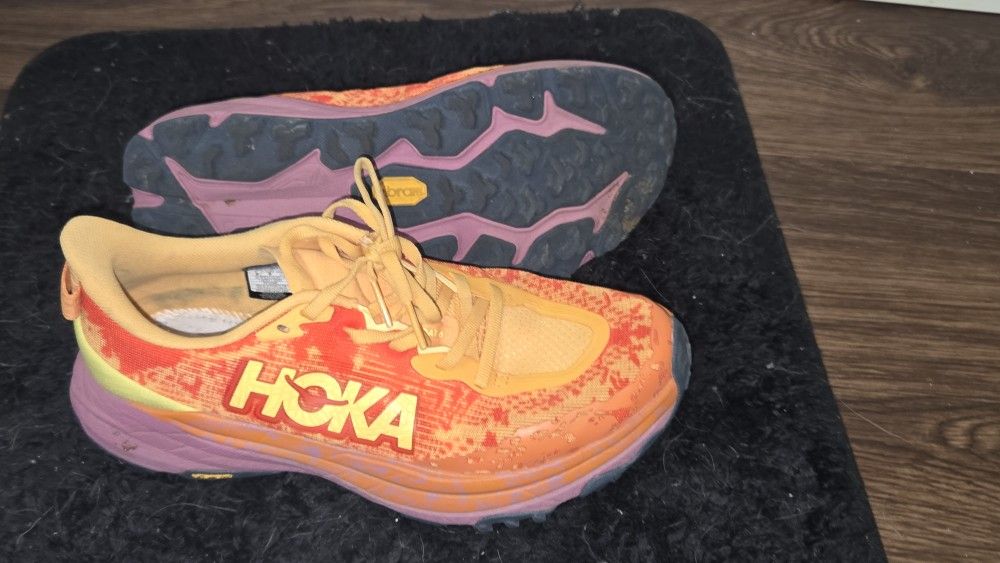 Size 7. I have only worn once. They are trail runners, so good grip. They will need inserts because I took them out to put in my custom ones.