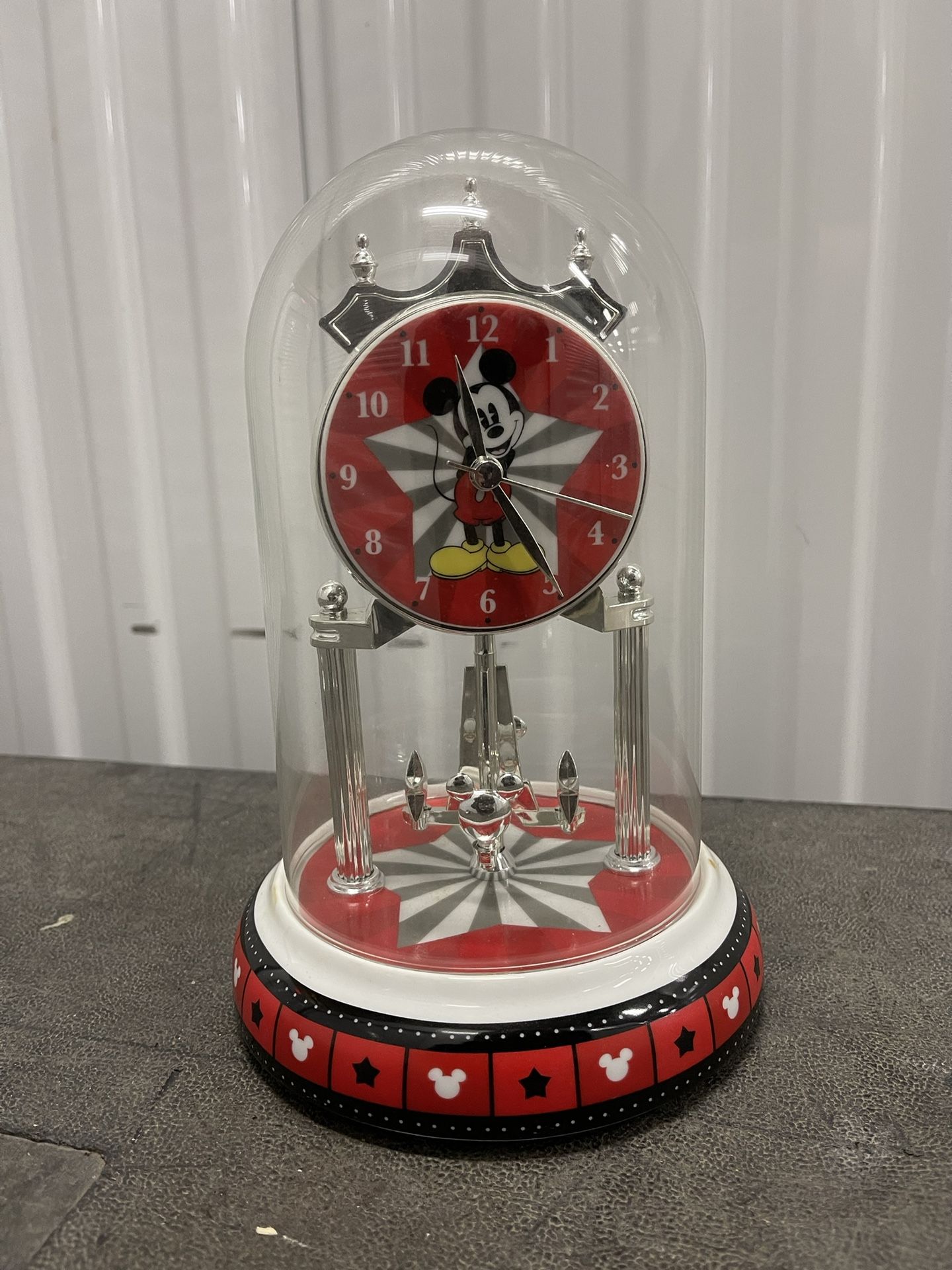 Disney Anniversary Clock, Mickey Mouse, Ceramic Base, Glass Dome, Quartz
