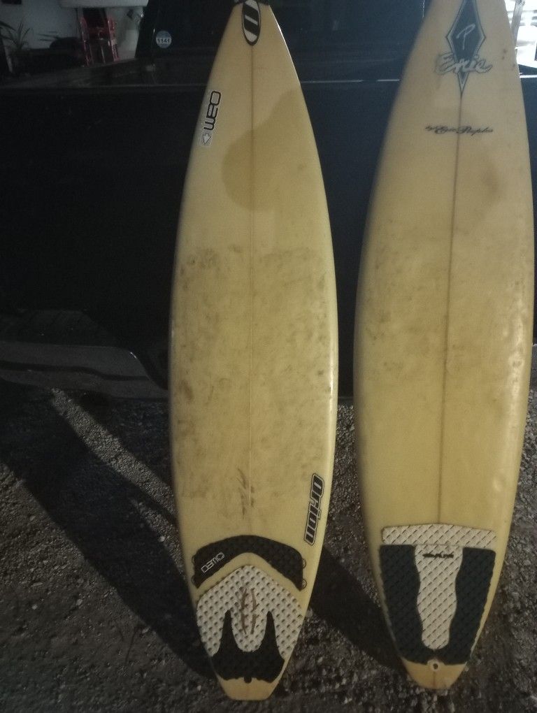 I've got two surf boards for sale signed by what looks like Eric Puples, asking $100 each or $150 for both thank you and God Bless...
