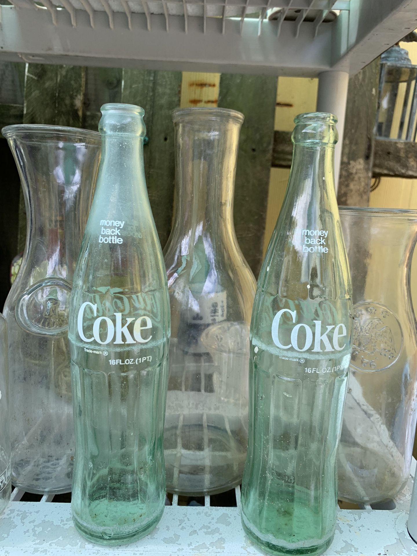 2Vintage Green Glass 1 Ltr Coke Bottle