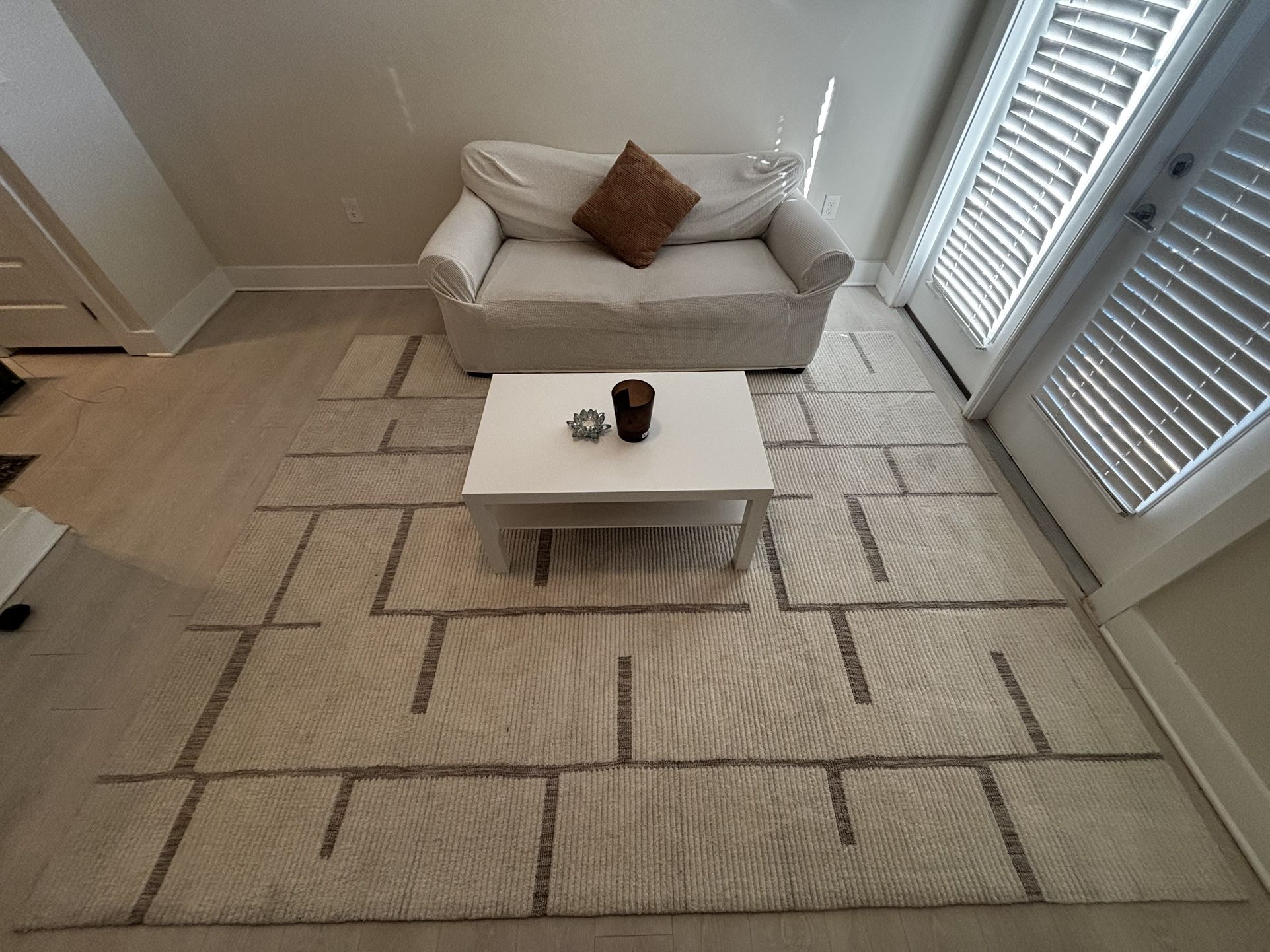 Moving and no longer need the rug. Couch is for sale too, I have a separate listing for it. Good condition and good size for any living room. Dimensions: 93” x 114”