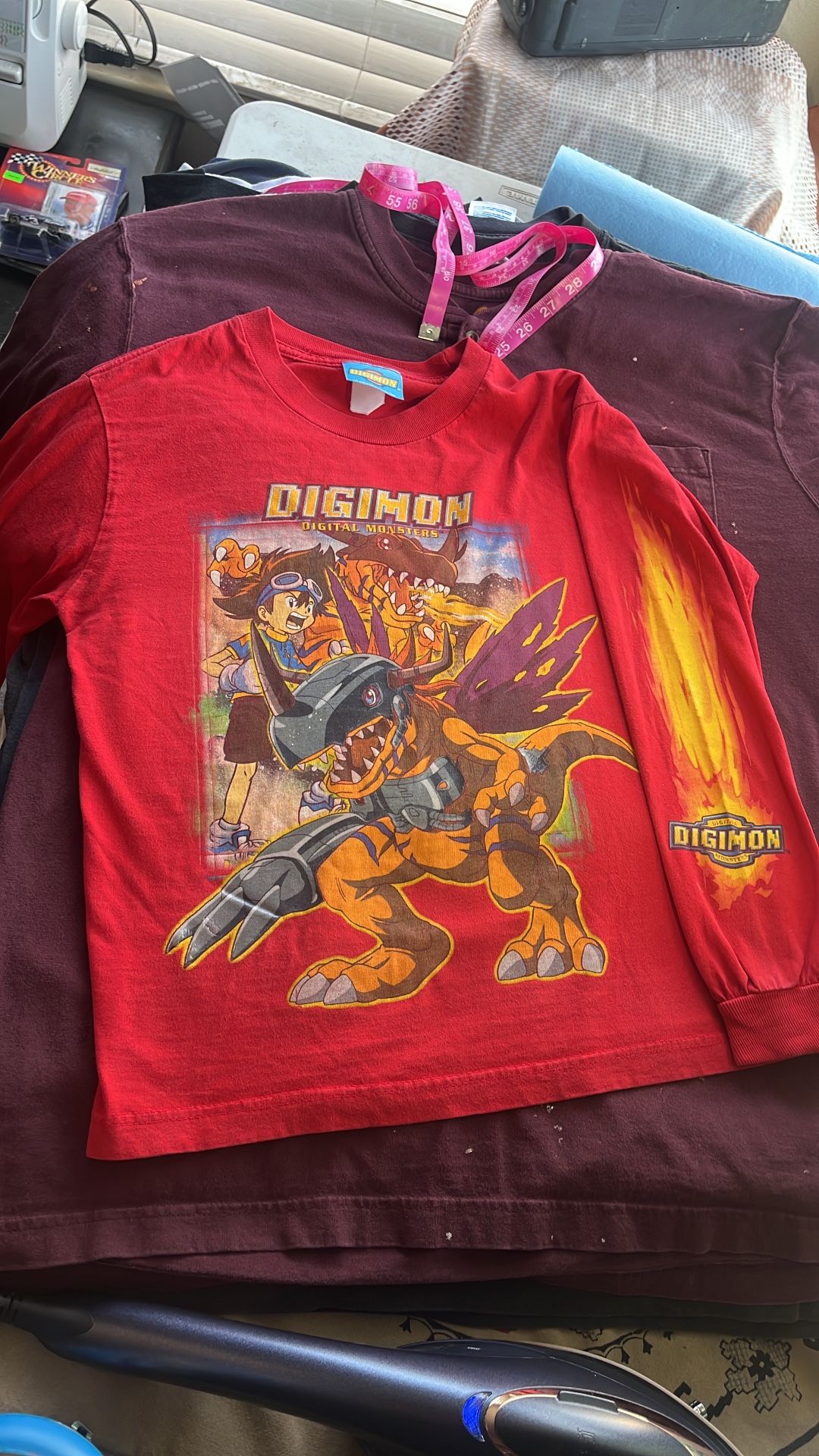 Digimon longsleeve with Digimon tag, either youth large or xl see measurements. No stains or rips.