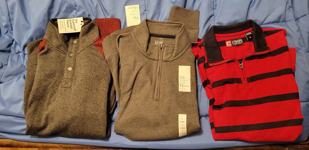 PLEASE DO NOT PURCHASE LISTING Sizes between medium and large, but most are large. Various brands such as urban pipeline and croft and borrow. All in good quality with normal wear. Prefer local, but can ship. Can do bundle discounts within reason. Will work on a list, but in the meantime feel free to message for details on sizes/brands. - Gray/red Sonoma supersoft sweater - $25 L - Never worn - Gray Croft and Borrow extrasoft fleece - $20 L - Never worn - Red/black Chaps - $15 M - Never worn - All others are $8