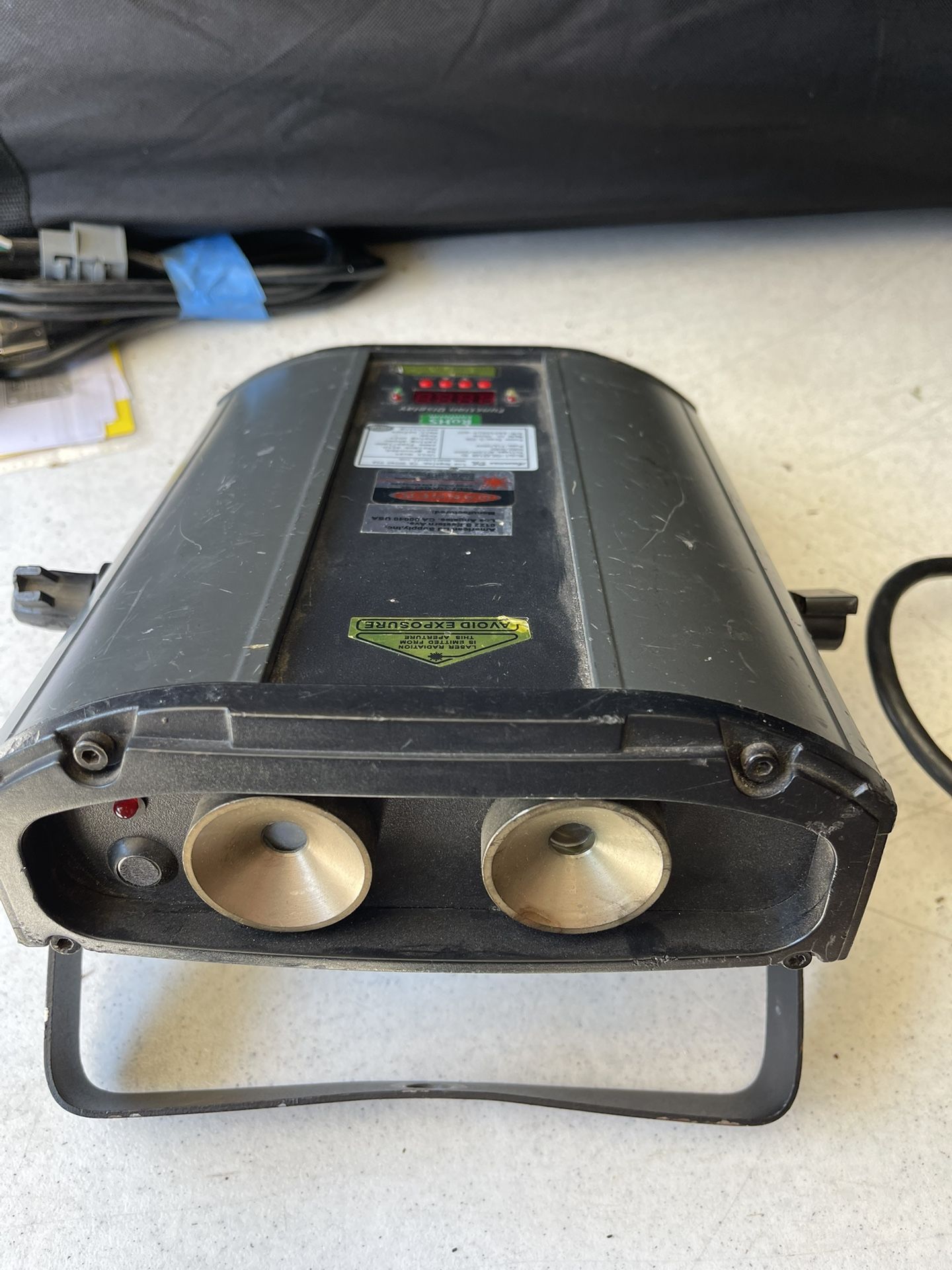 Dj láser light Works great! Normal wear and tear Comes with power cord