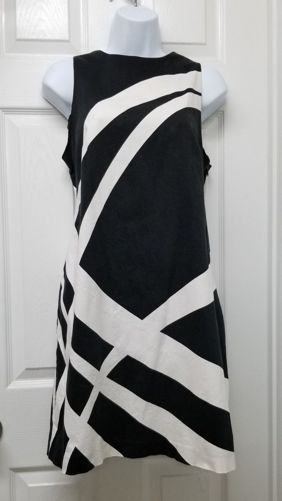 London Times black and white stripe dress size 12 measurements armpit 18"x mid 18"x hip 19"x length 34" good condition.