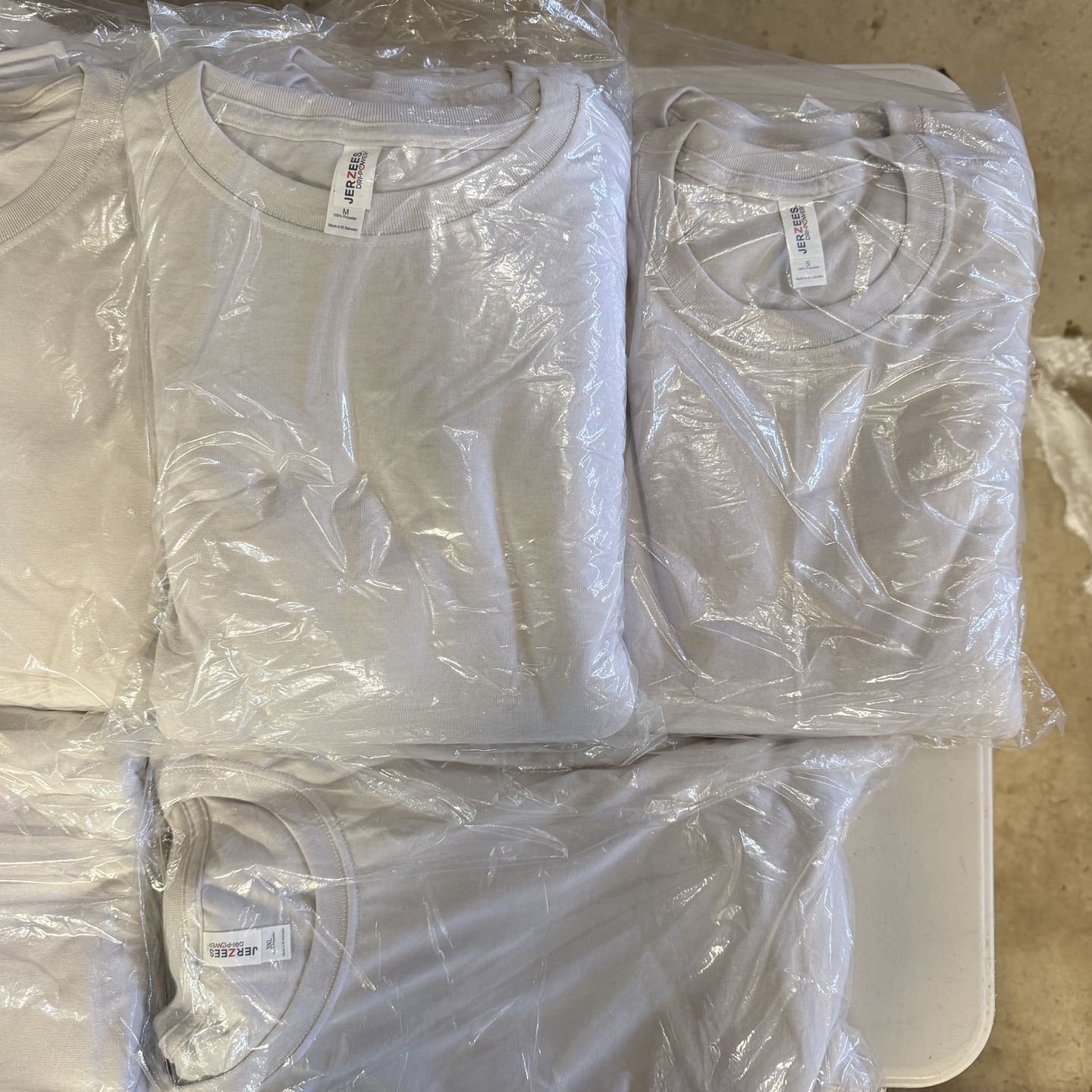 All new Shirts are light Gray $3 each Small - 7 Medium - 14 Large - 9 XL - 8 $4 each 2XL - 5 3XL - 3 Make an offer for all shirts Style: 21M Weight: 5.3 Oz Sizes: S, M, L, XL, 2XL, 3XL Features 5.3 oz., 100% polyester Double-needle stitching on sleeve and bottom hem Double-needle coverstitching on front neck Anti-microbial and odor control Superb breathability and hand Ideal for sublimation printing Shoulder-to-shoulder taping Seamed 1x1 rib collar Wicks moisture away Seamless body Tear-away label Product Description The Jerzees DRI-POWER® SPORT T-Shirt enhances your craft with style and performance. Made entirely from moisture-wicking polyester, available in over 10 vibrant colors, and designed for optimal printability, this tee is a crafter's dream. Its seamless body and smooth surface make it ideal for sublimation and DTF Transfers, ensuring vivid colors and sharp details. Crafters love the soft, breathable fabric that feels like cotton, optimal for custom projects from fashion to promotional wear.